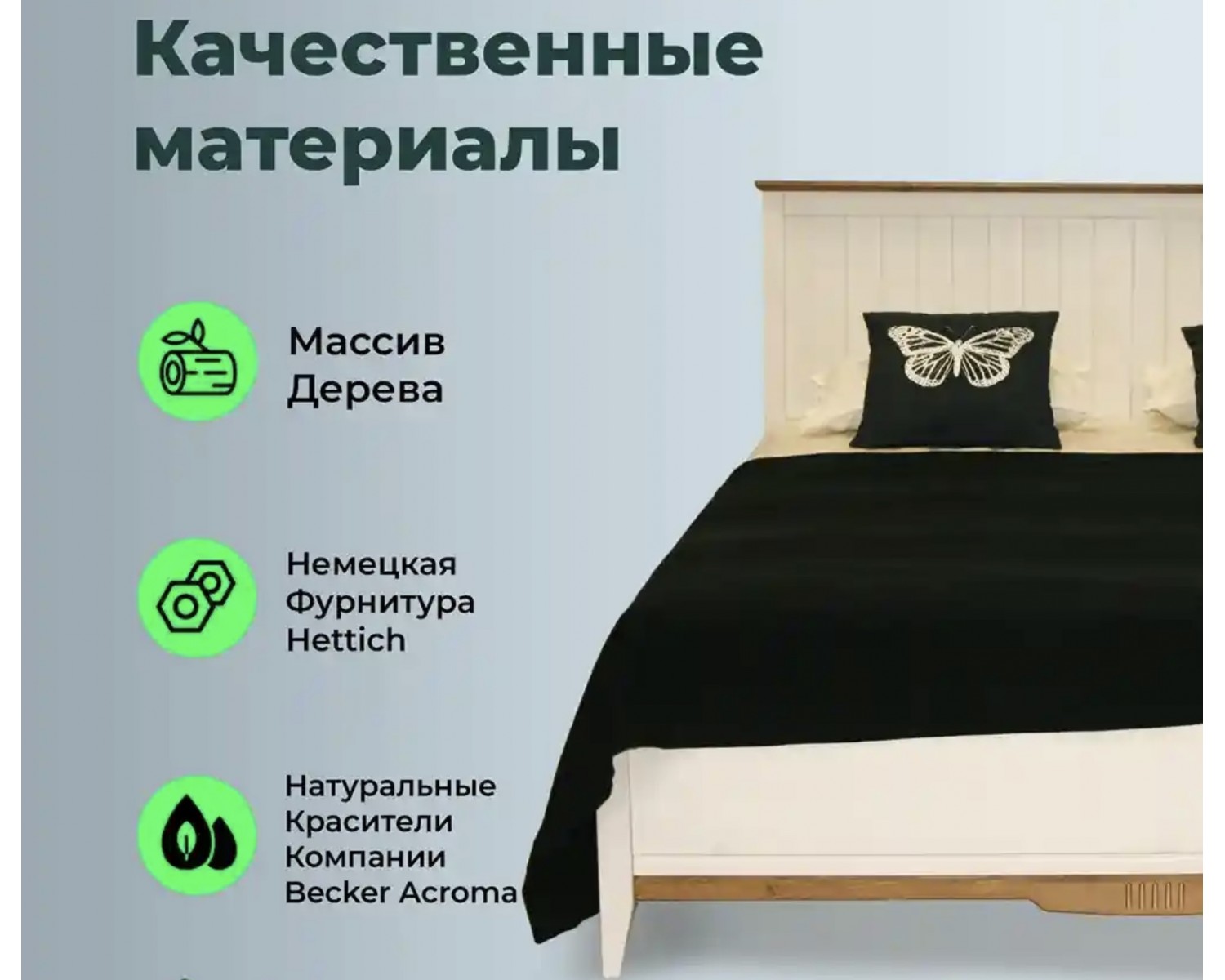 Кровать двуспальная 160х200 Пенни белый воск/антик 24 изготовлена полностью из массива сосны и покрыта высококачественными матовыми лаками на водной основе от шведского бренда Becker Acroma.