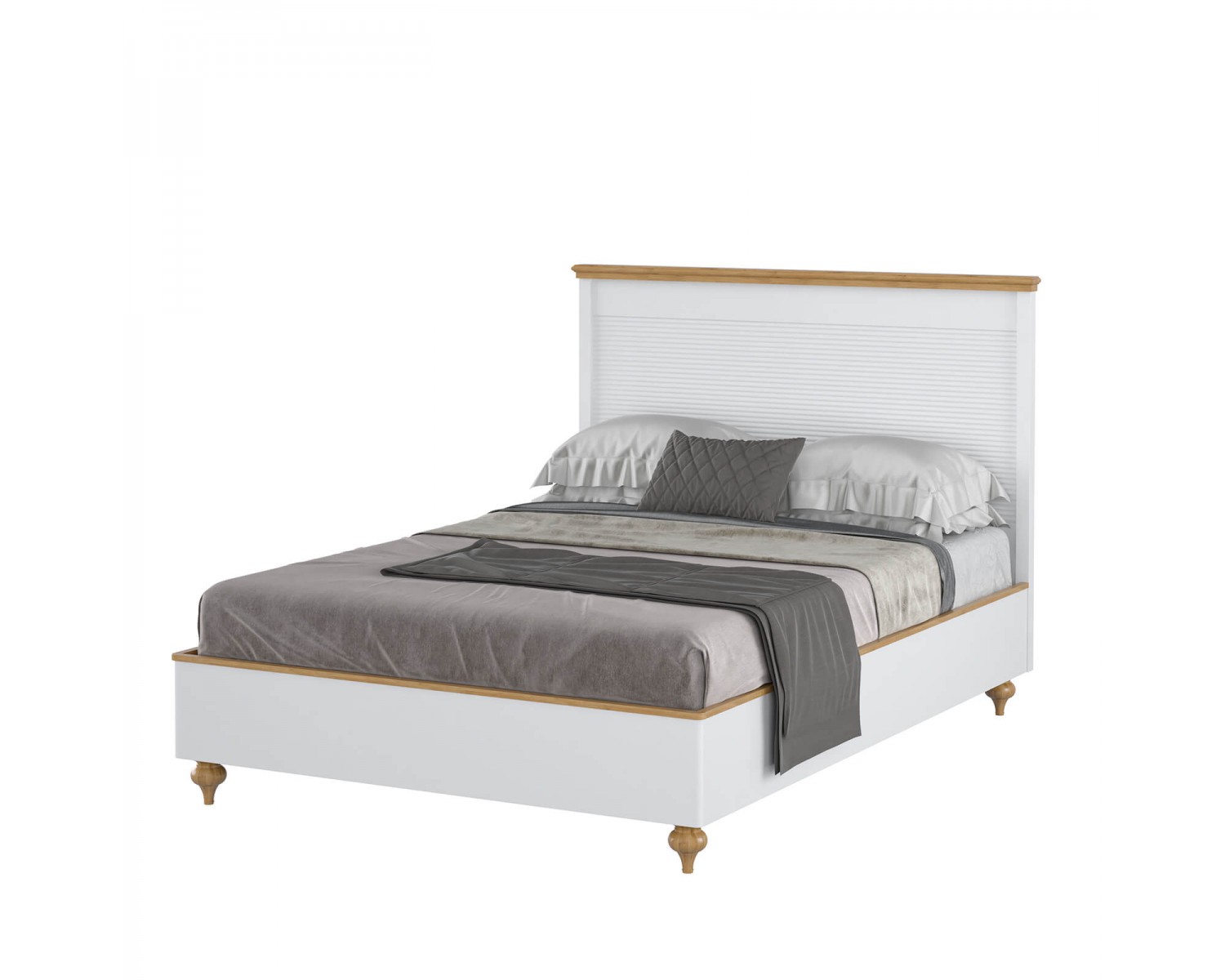 Кровать коллекции «Рандеву» 160 – это простой классический дизайн в уверенном исполнении из натурального дерева и МДФ. Она оснащена красивым изголовьем, без изножья. Высокие ножки – удачное решение для быстрого доступа во время уборки. Обратите внимание, что настил или ортопедическое основание в комплект не входят.