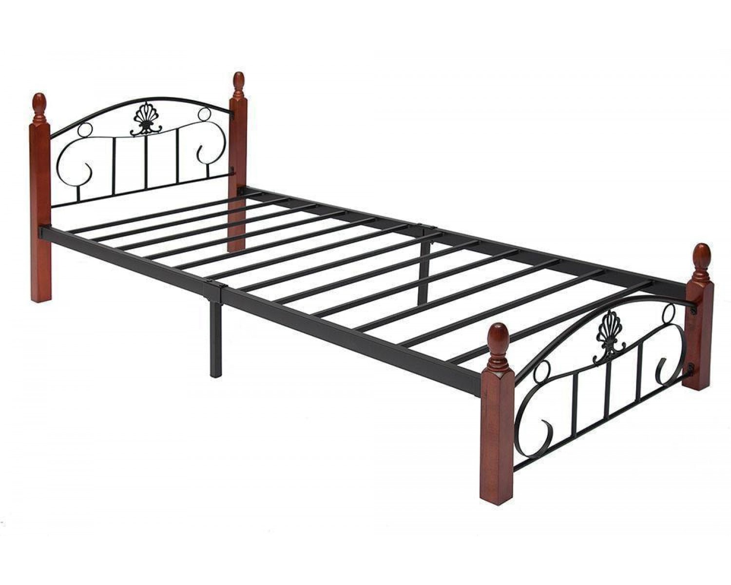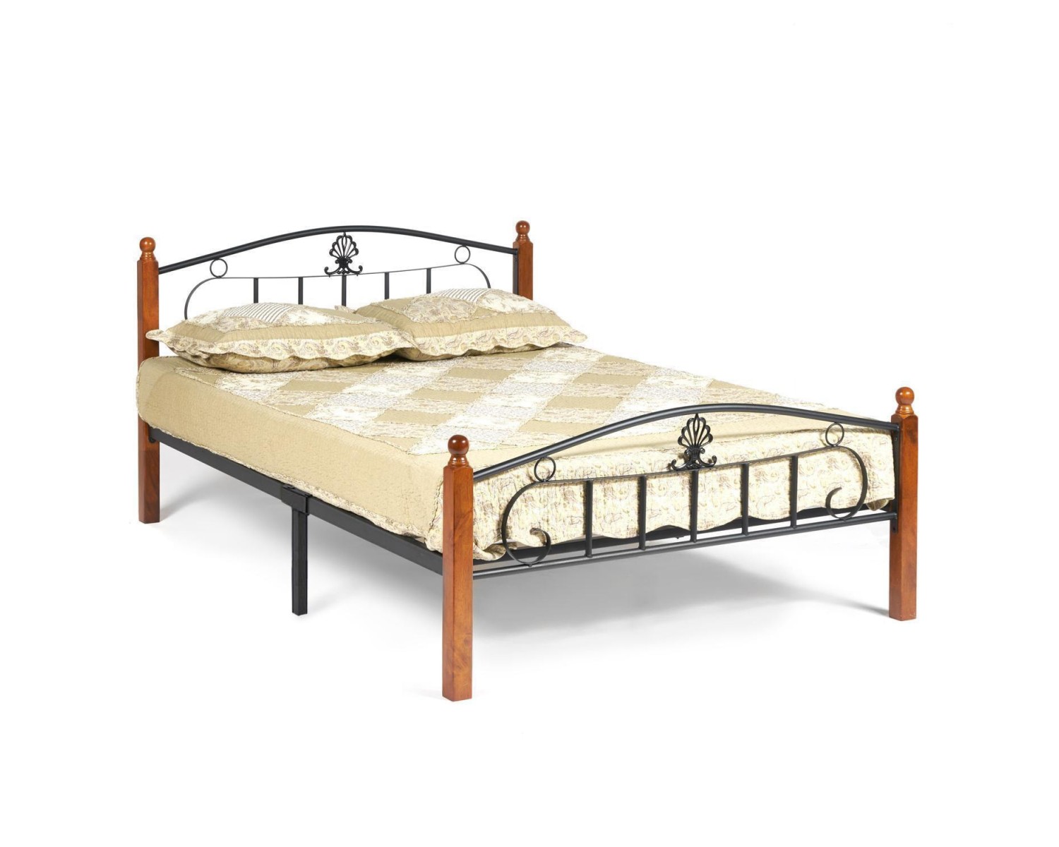 Двуспальная кровать. Материал: ножки - дерево гевея; основание, изголовье, изножье - металл. Усиленная база. Цвет: дерево - красный дуб, металл - чёрный. Страна-производитель: МАЛАЙЗИЯ