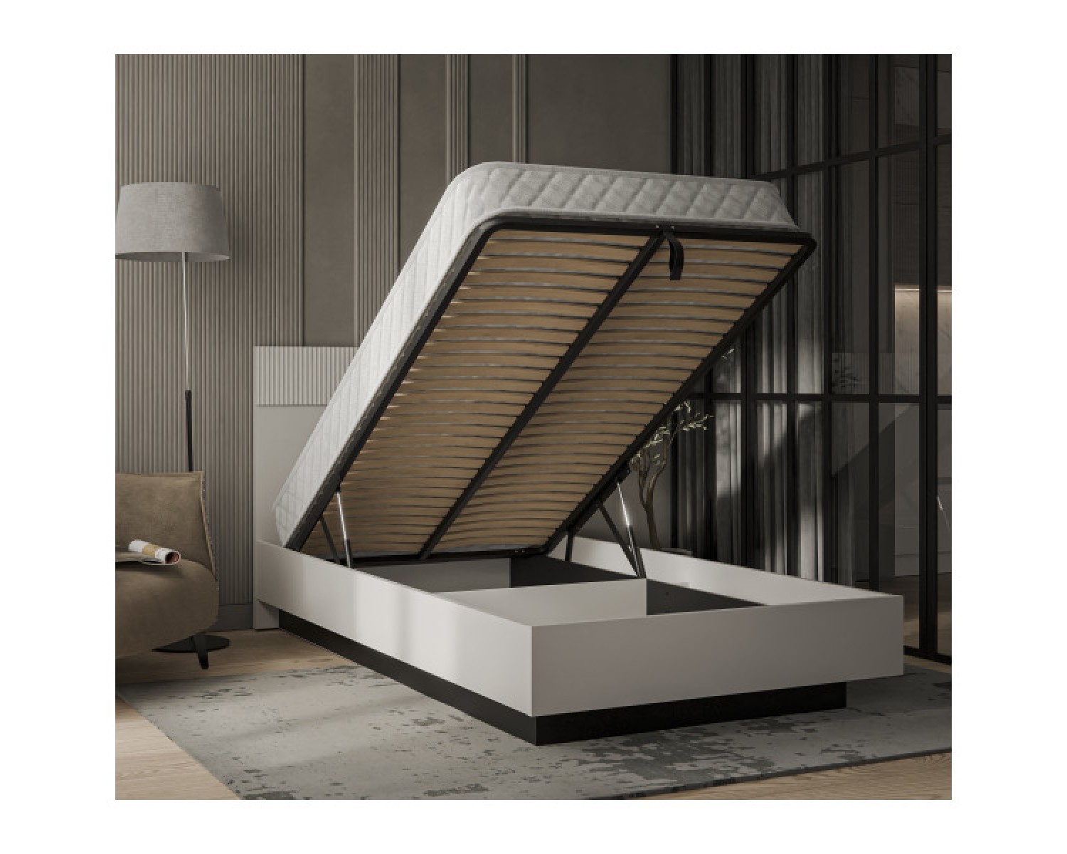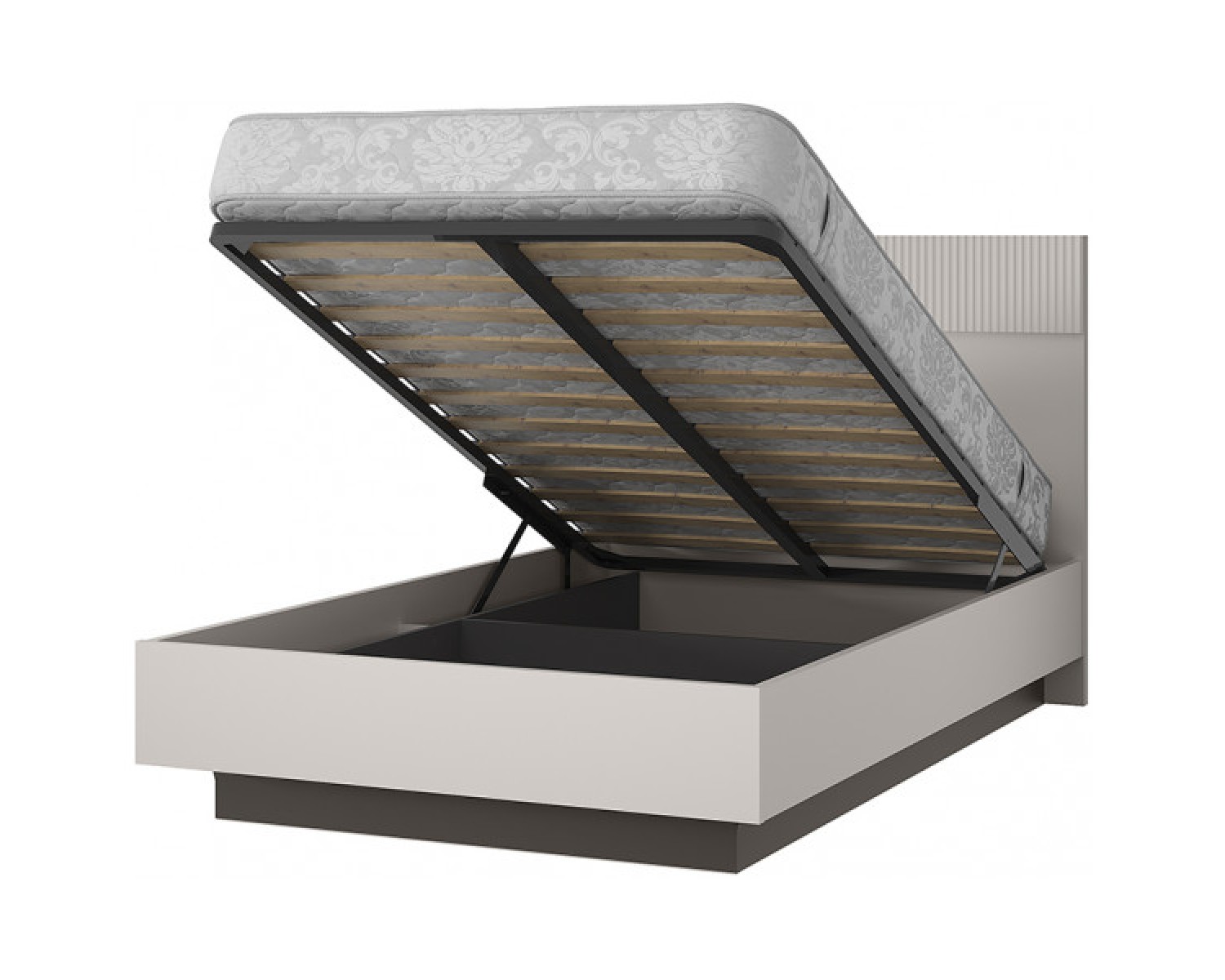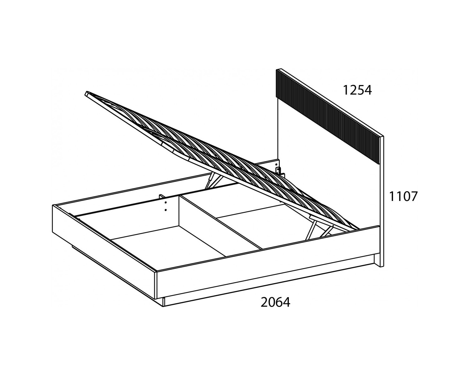 Кровать 120 с подъёмным механизмом VINATI. Организация зоны сна и отдыха в молодёжной/детской комнате. Кровать полуторная, размер спального места – 1200*2000 мм (ширина – 1254 мм, высота – 1107 мм, глубина – 2064 мм). Конструкция кровати представляет собой сплошное изголовье прямоугольной формы (с вставкой из МДФ) и изножье прямоугольной формы, царги и металлическое основание с подъёмным механизмом, большой вместительные короб для хранения вещей, белья и предметов быта. Деревянные ламели служат дополнительной амортизирующей основой.