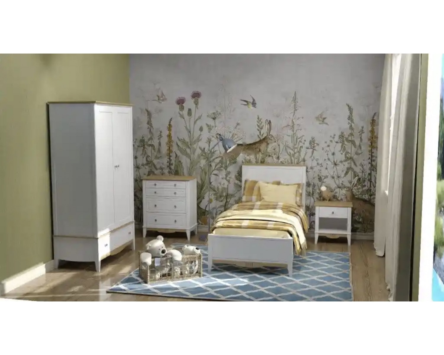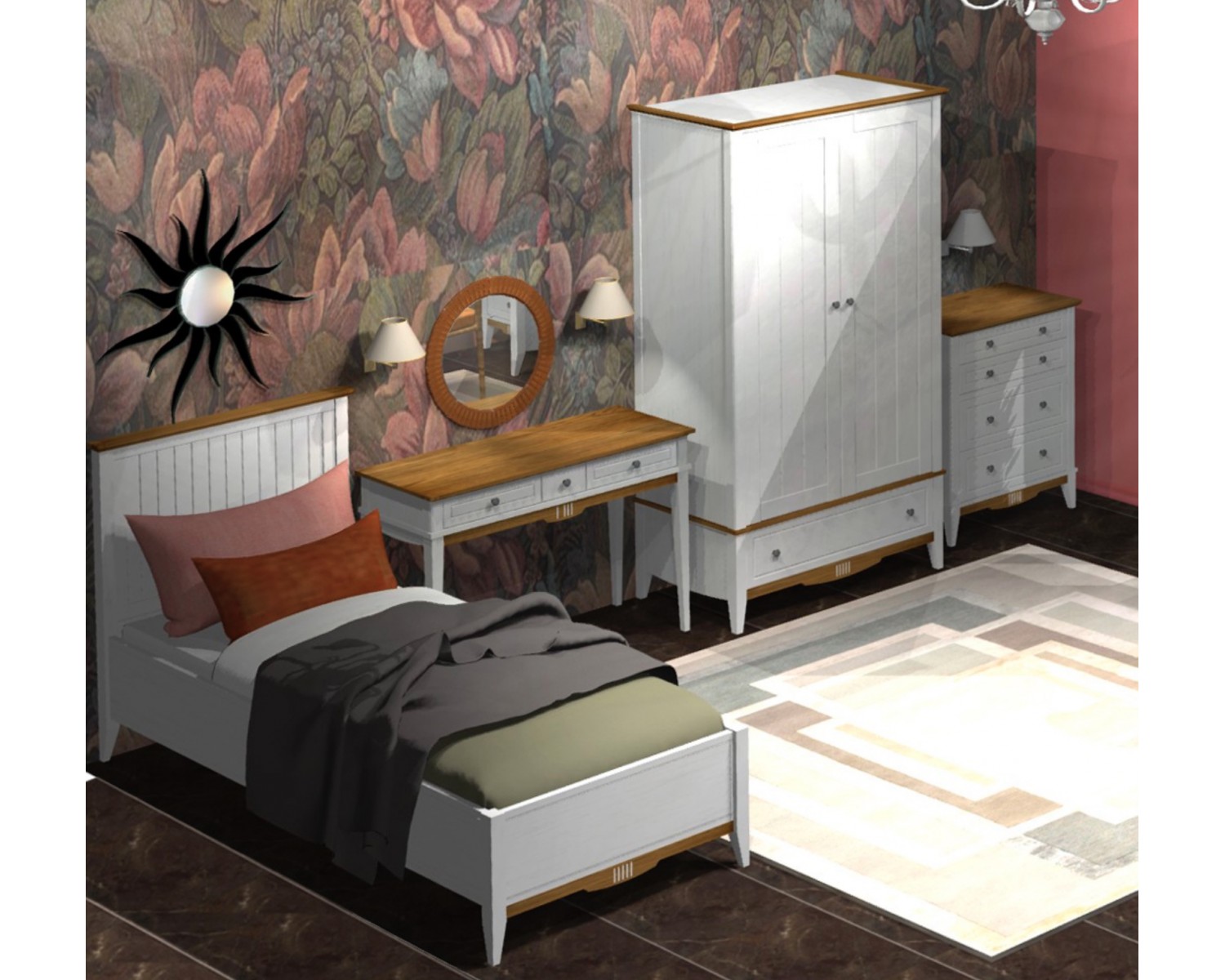 В дизайне кровати гармонично объединены два цвета: корпус окрашен в белый цвет, а декоративные детали изголовья и изножья в цвет антик, через который видна красивая древесная текстура. Для любителей более строгих тонов предлагается эта же модель, но в отделке «серый/антик». Кровать «Пенни» станет центральным элементом спальни в скандинавском, классическом стиле или в стиле прованс.