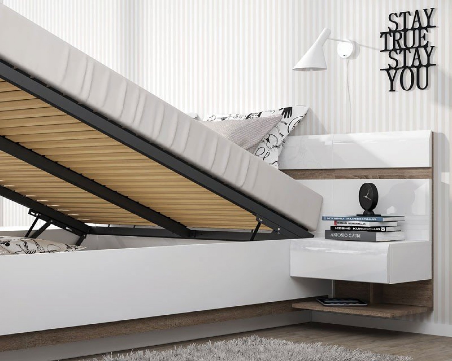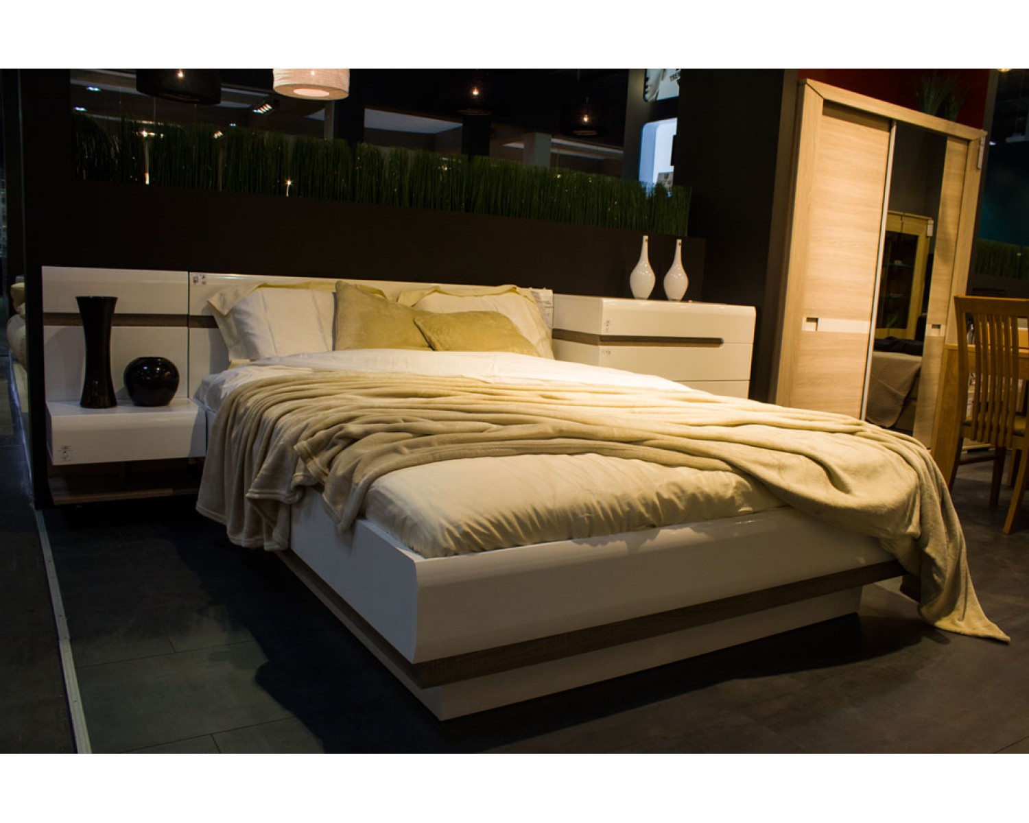 Спальный гарнитур Линате в современном стиле, отличается качественными экологичными материалами и минималистичным дизайном. Сочетание белого глянца с древесной текстурой. Нетрадиционный дизайн коллекции LINATE — это отличный вариант для тех, кто всегда следует новым веяниям моды. Белый глянцевый фасад, оригинальное исполнение ручек, в виде J-образных канавок, направляющие скрытого монтажа с доводчиками, а также необычный дизайн всей коллекции подчеркнет индивидуальность владельца, его стремление к оригинальности и новизне.