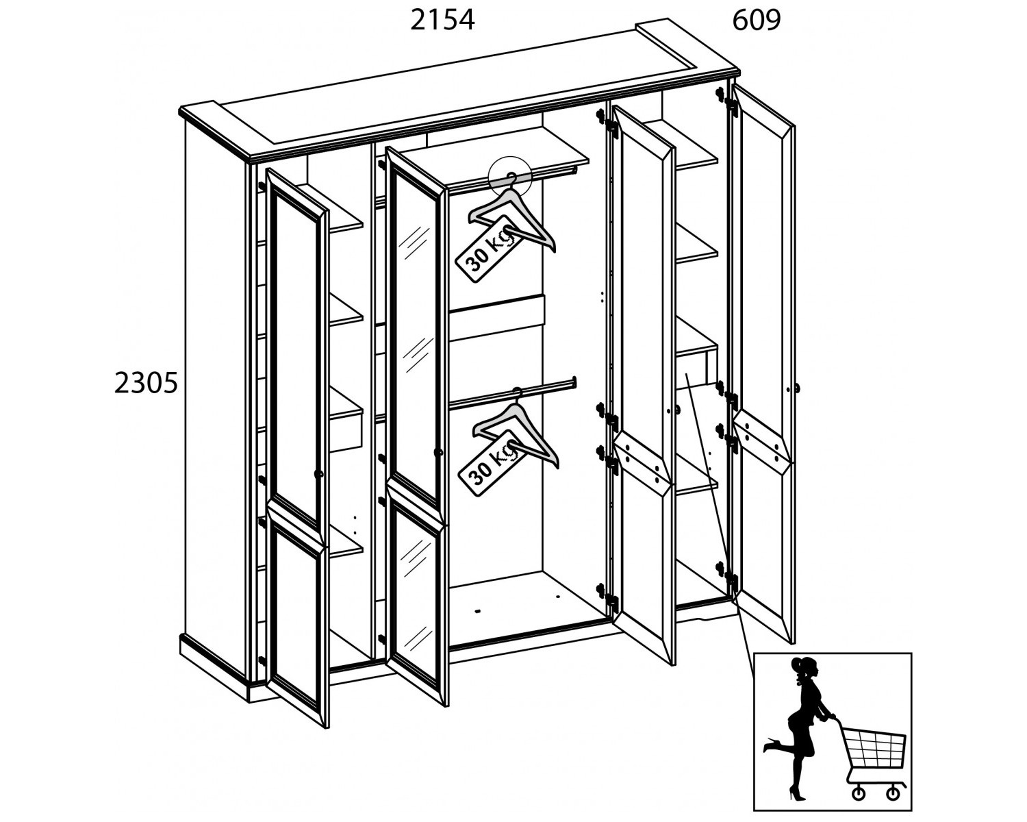 TOSCANA NEW, Шкаф 4DG Z. Цвет ПЕРСИДСКИЙ ЖЕМЧУГ/КАНЬОН 2154х2305х609