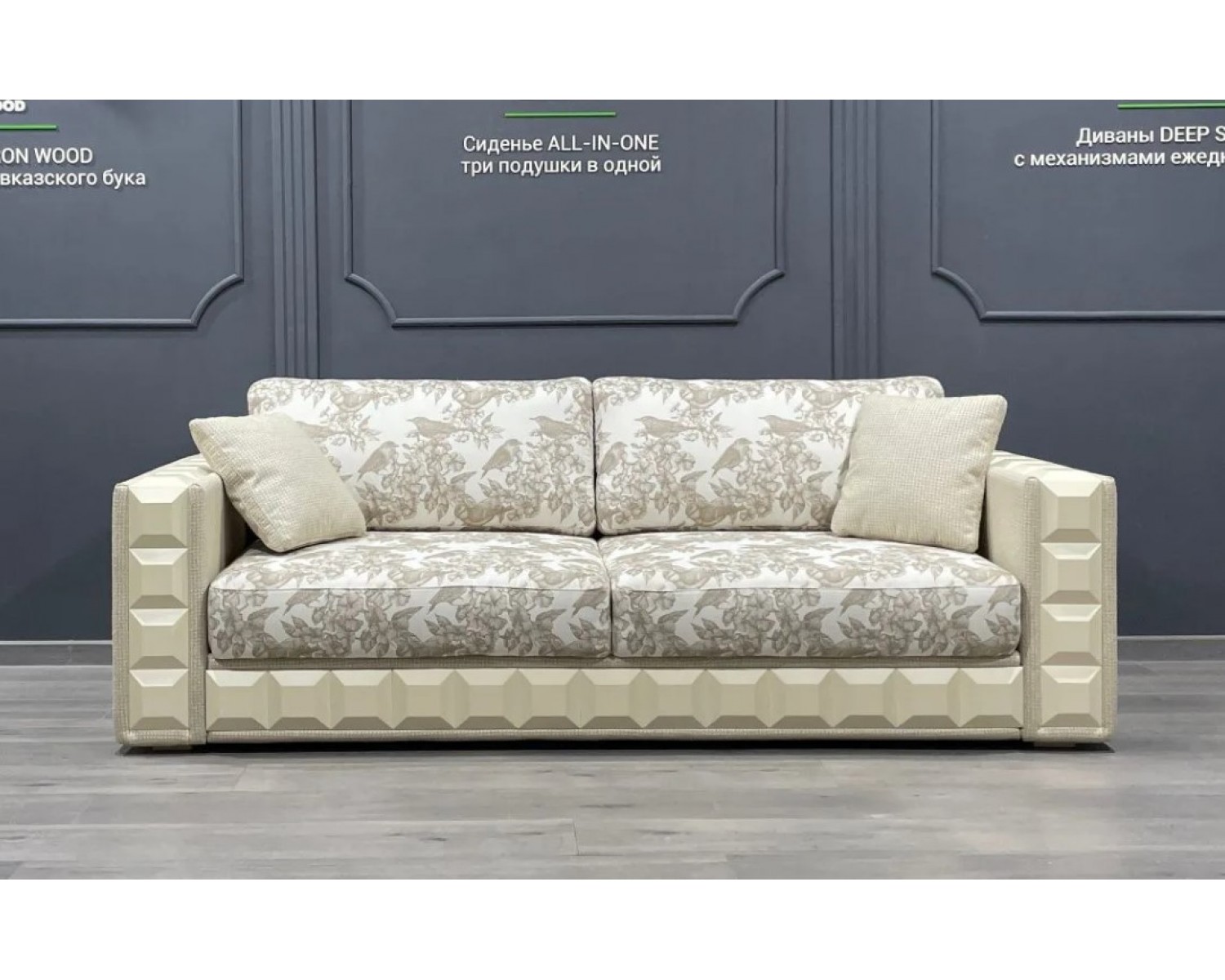 Диван стоит на несущих опорах (ногах) из натурального дерева - кавказского бука, который обладает неповторимым цветом и особенным рисунком дерева.