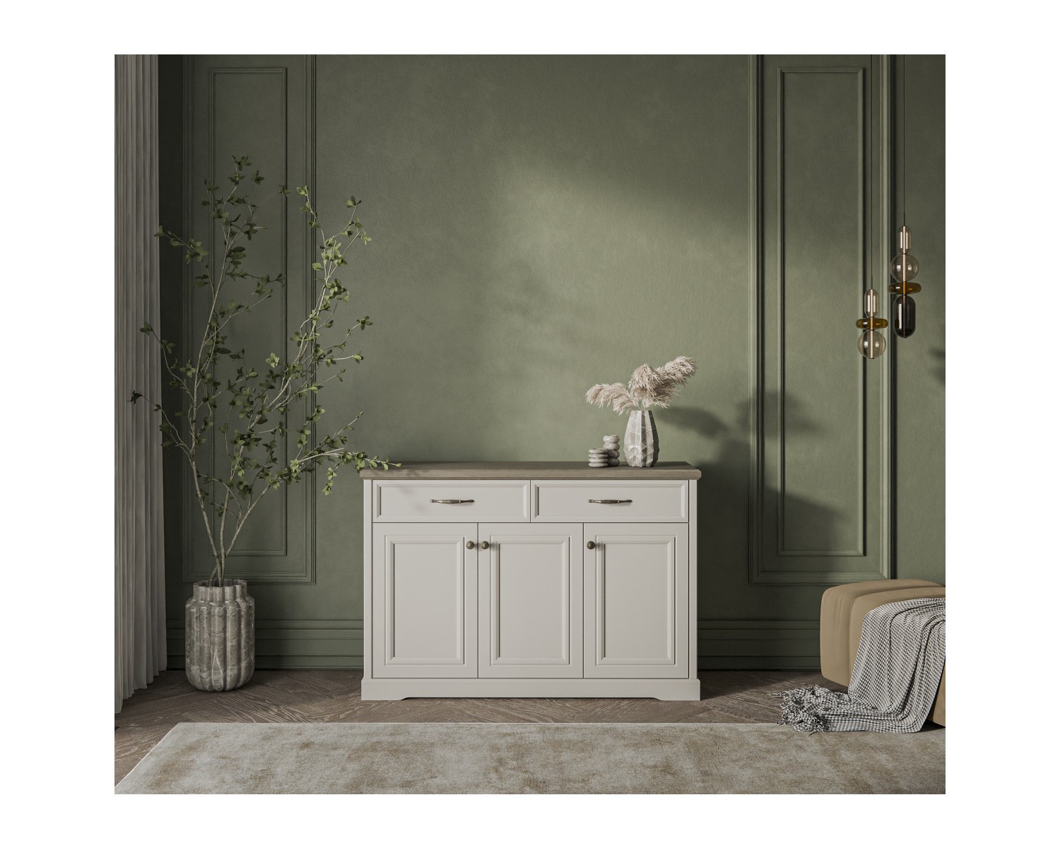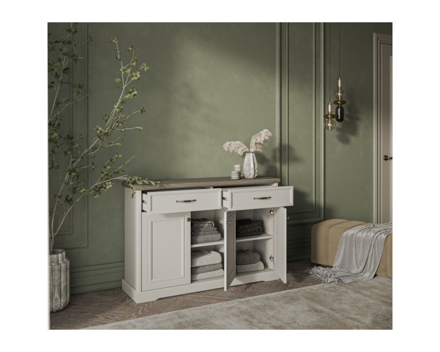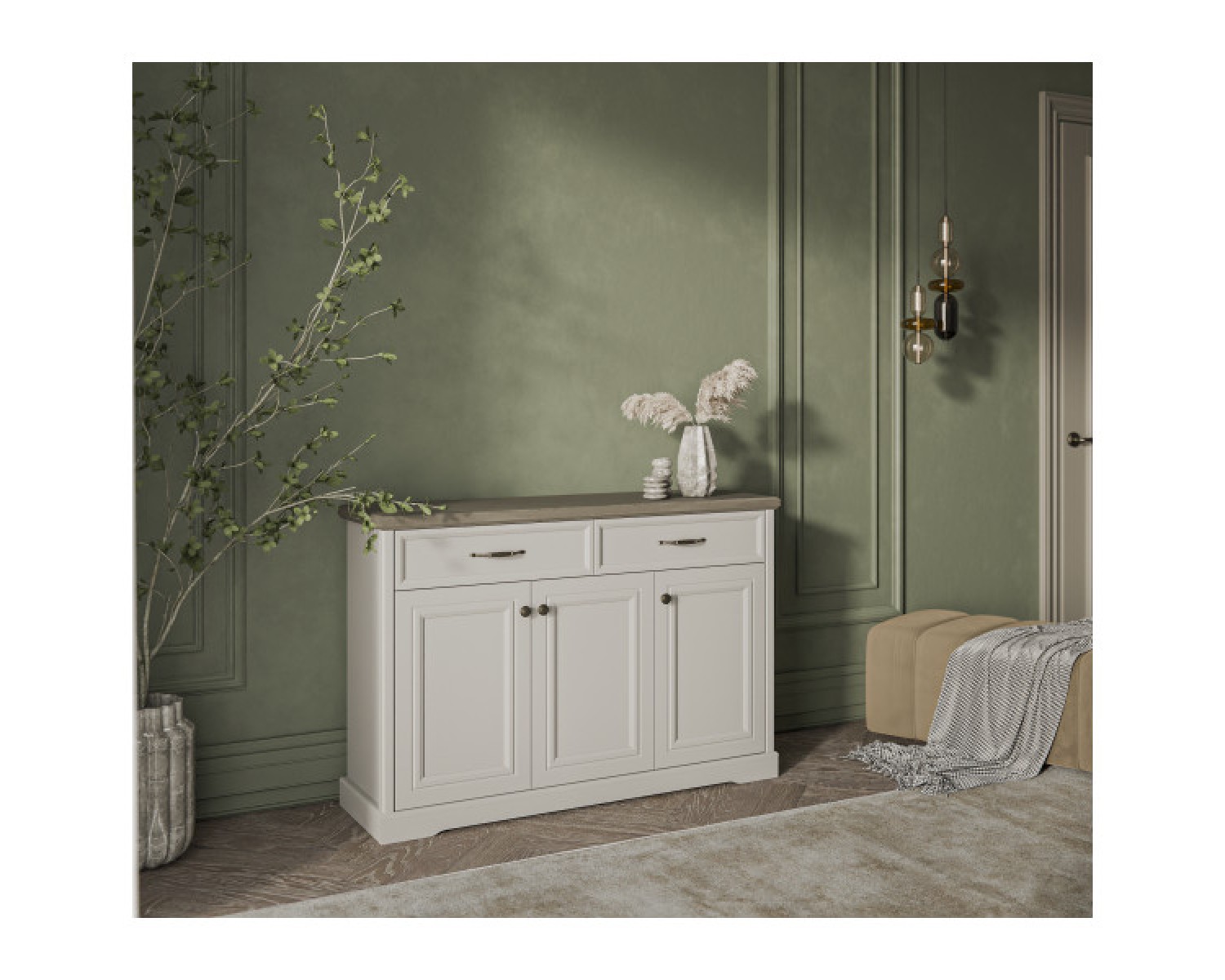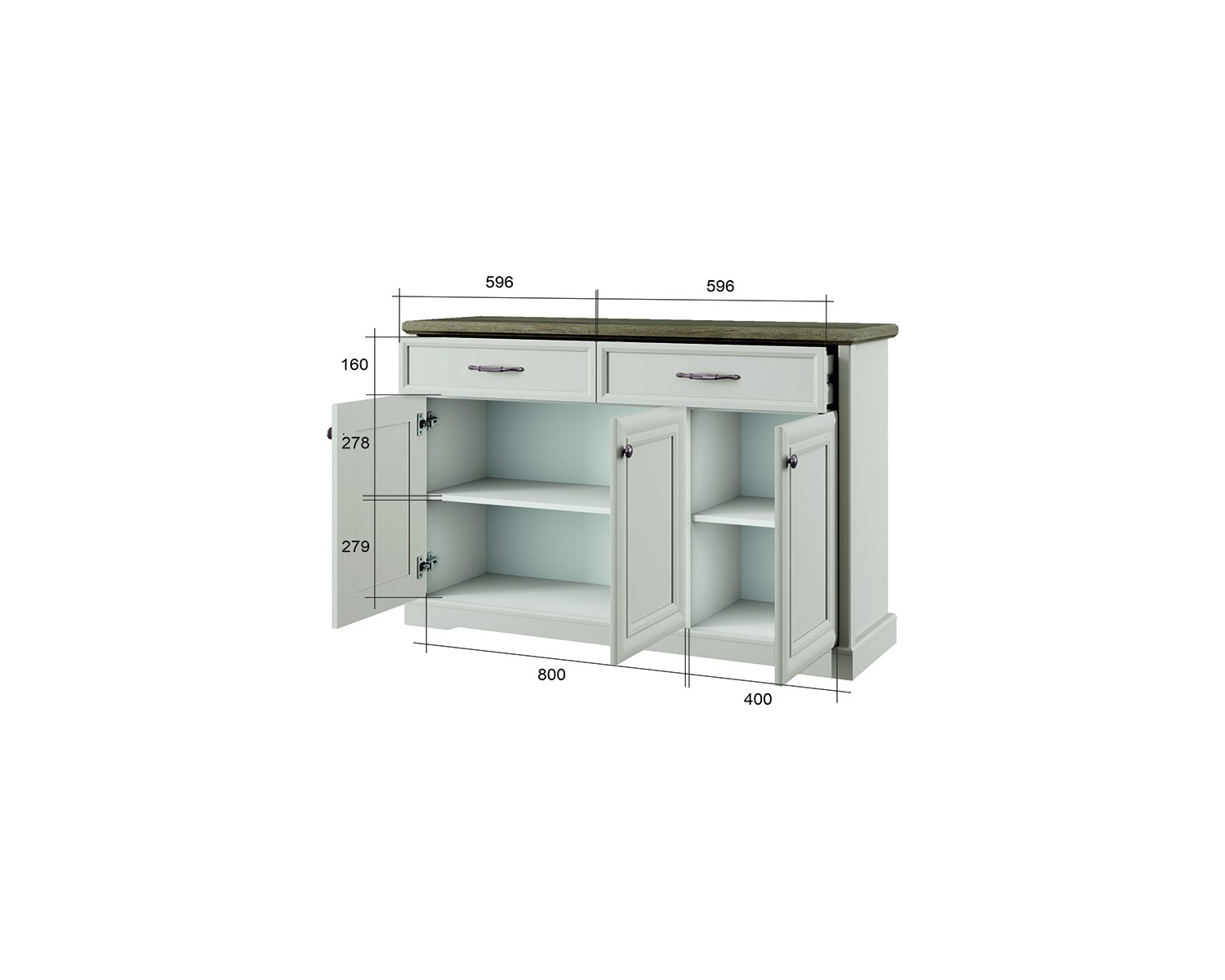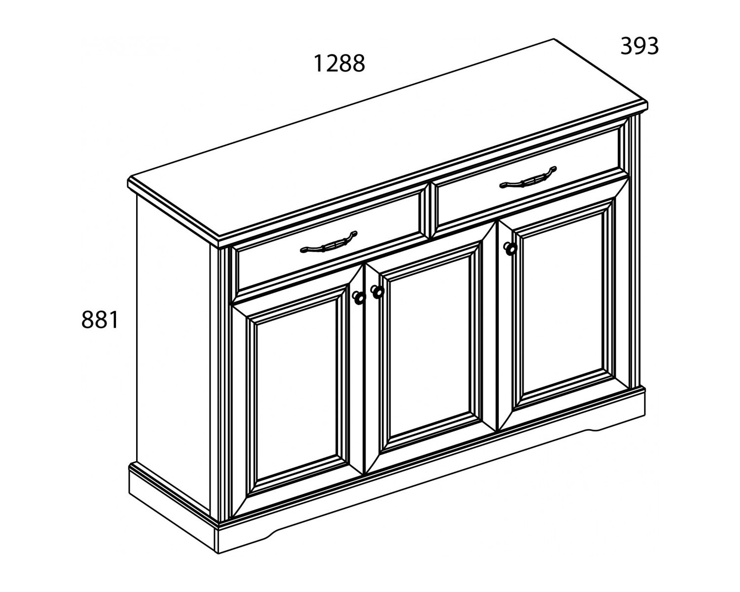 Тумба 3D2S TOSCANA NEW отличается от тумбы 3D2S-1 меньшей шириной (1288 мм) и более привычным расположением отделений. Разрешит многие вопросы по организации пространства из-за своей универсальности. Конструкция тумбы 3D2S прямая, представляет отделение с полкой ЛДСП за двумя глухими дверями, одно отделение с полкой ЛДСП за глухой дверью, два выдвижных ящика (2S). Двери (3D) распашные, крепятся на петли к внутренней перегородке и боковому корпусу изделия.
