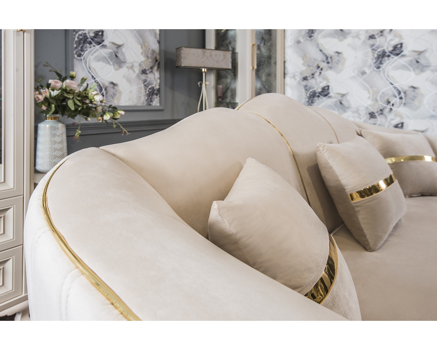 Утонченные элементы, роскошная обивка, витиеватые накладки доставят эстетическое наслаждение своим владельцам. Бежевый цвет «Lara» мебели позволяет визуально увеличить пространство спальни, подчеркнуть важные детали, добавив в пространство легкости и света.