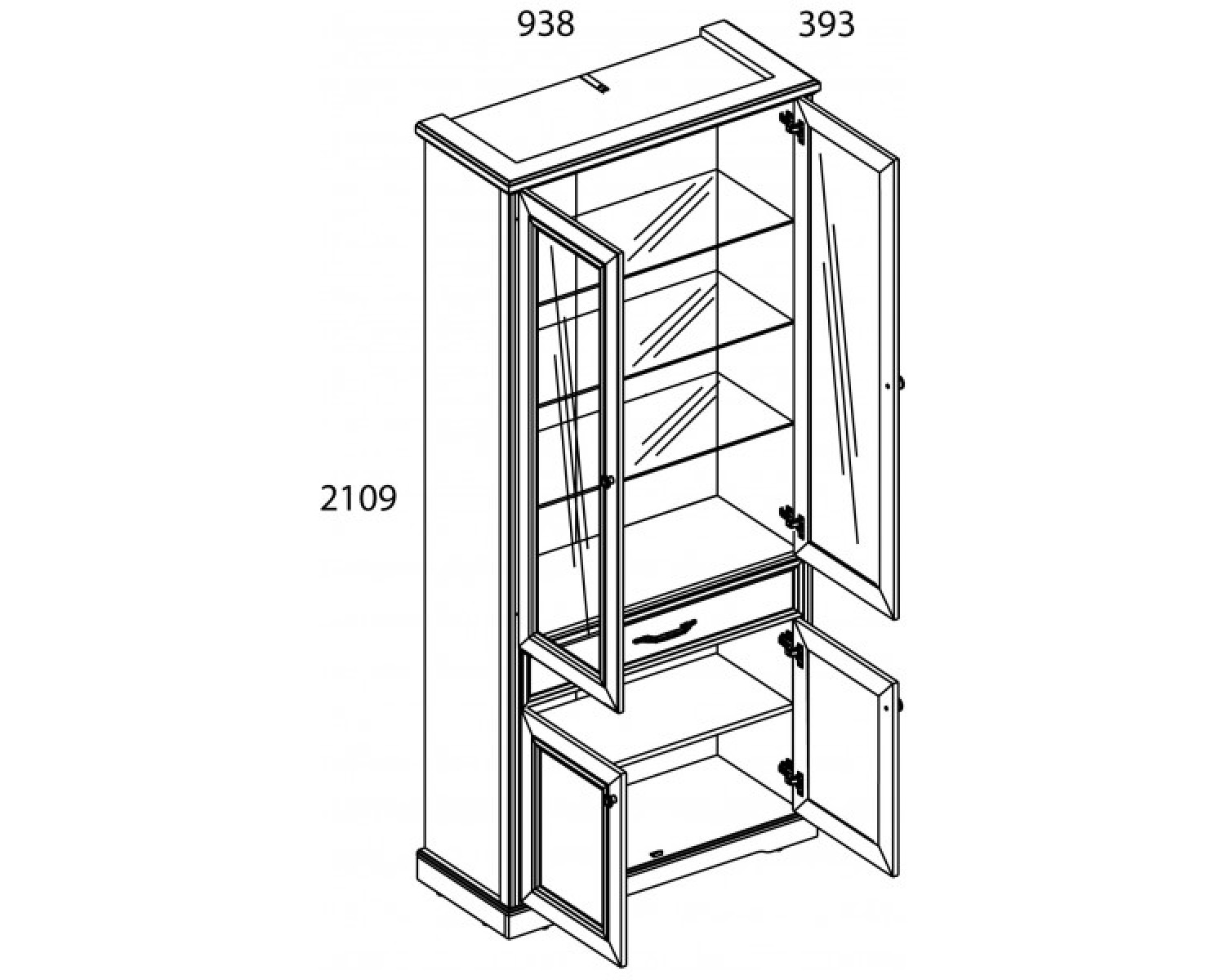 TOSCANA NEW, Шкаф с витриной 2V2D1S. Цвет ПЕРСИДСКИЙ ЖЕМЧУГ/КАНЬОН 938х2109х393 - 1шт