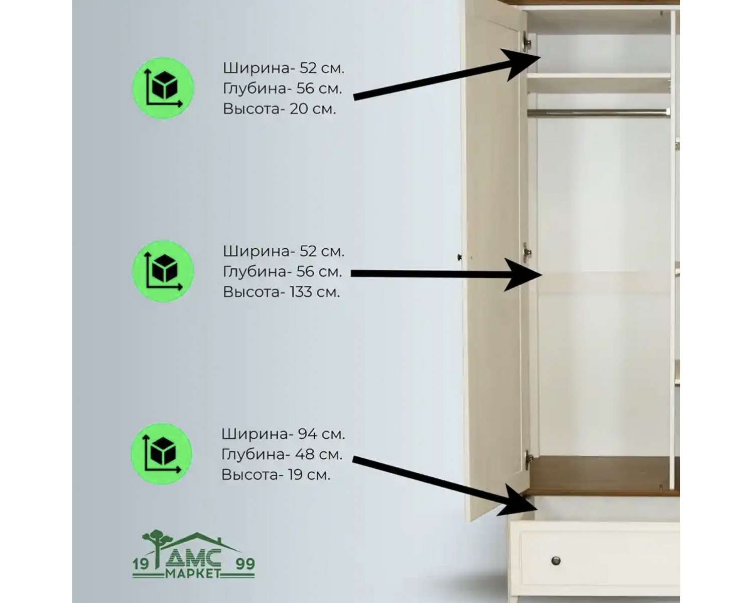 В комплекте идет фурнитура, крепежные элементы (включая заглушки на отверстия) и инструкция по сборке. После покупки можно вывезти и собрать шкаф самостоятельно, но мы рекомендуем заказать услуги по доставке и сборке в нашей компании. Затраты окупятся бережной доставкой с подъемом на этаж и качественной профессиональной сборкой. Гарантийный срок на шкаф – 12 месяцев.