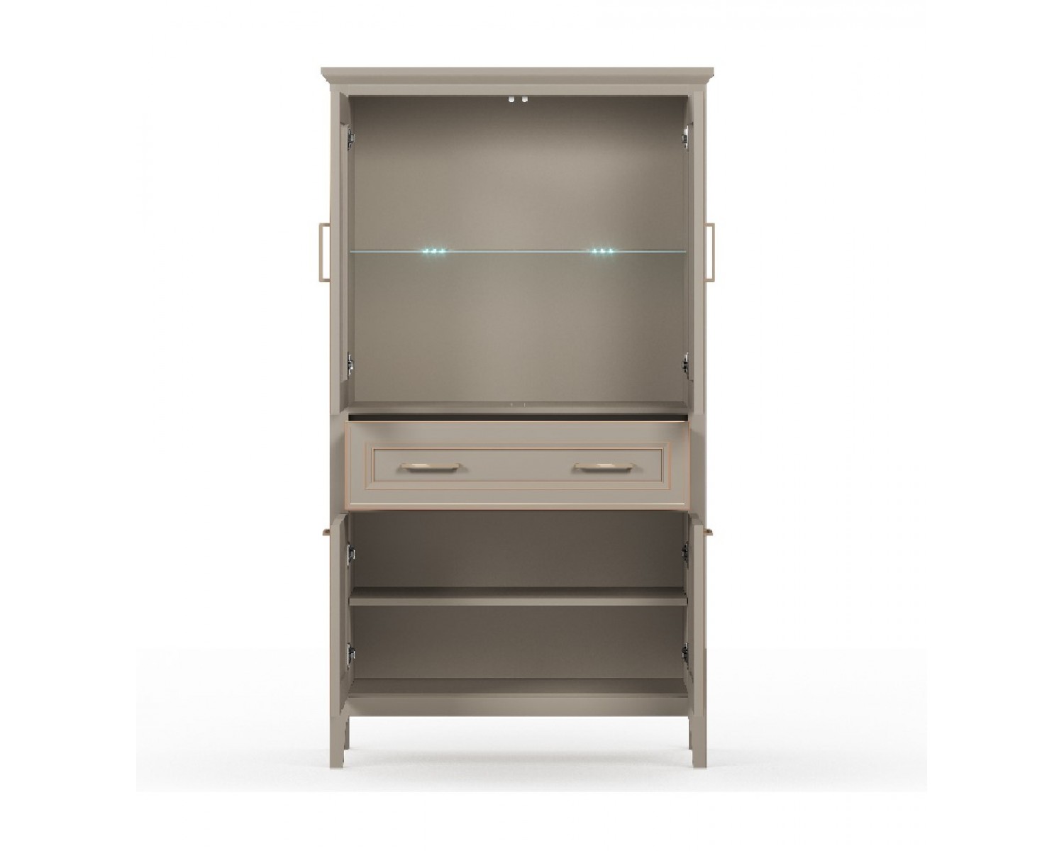 В верхней части шкафа расположены две двери со стеклянными вставками (стекло с фацетом)