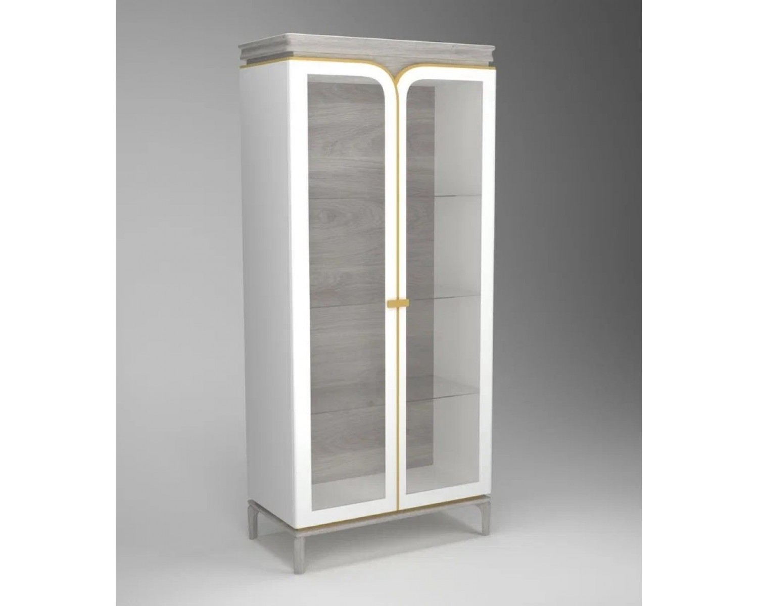 опорами. Шкаф с витриной имеет подсветку. Карниз и цоколь изготовлен из массива дуба.