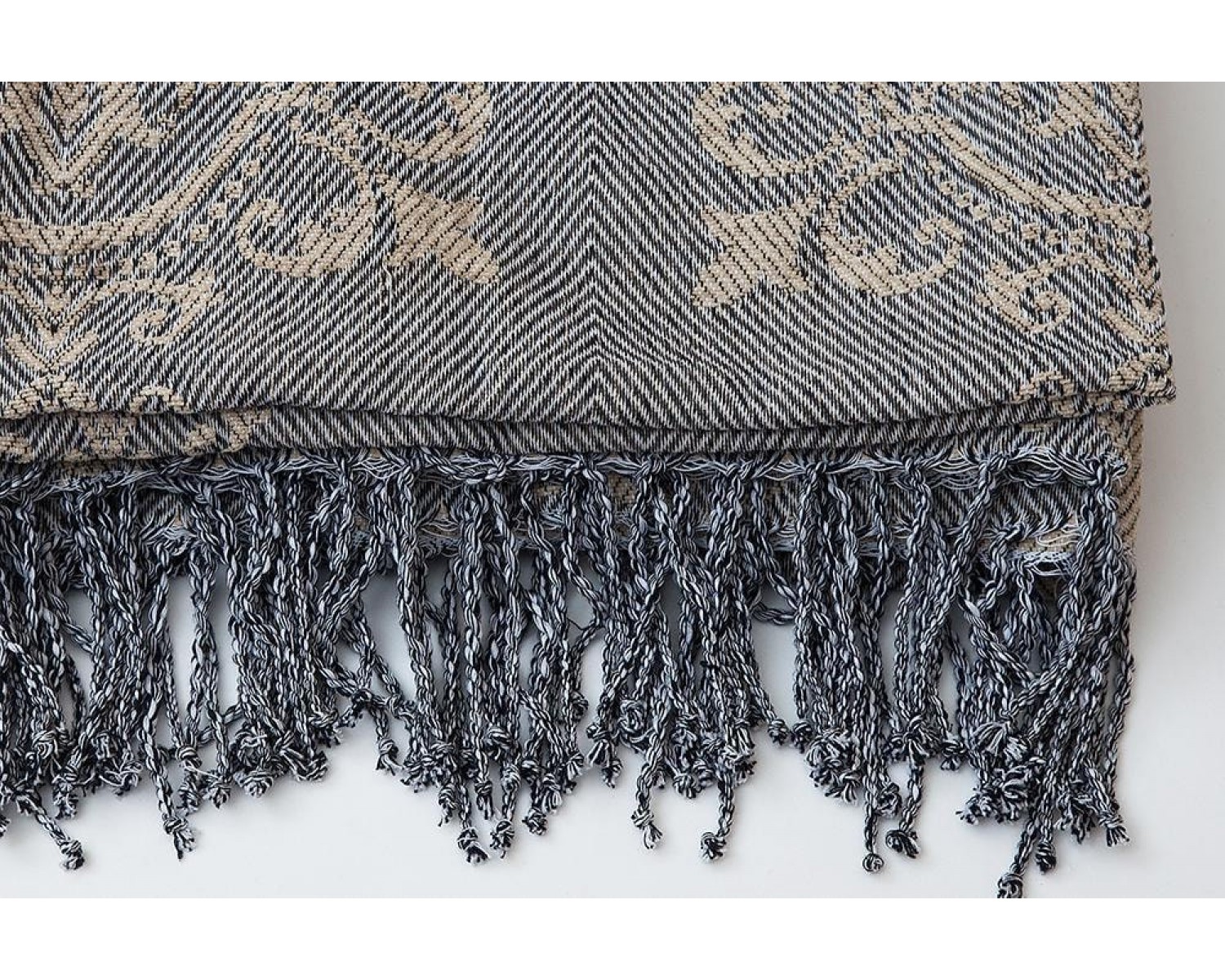 Двусторонний. Декор - бахрома. Материал: хлопок. Плотность: 350 gsm. Цвет: бежево-синий, классический орнамент. Страна-производитель: Индия