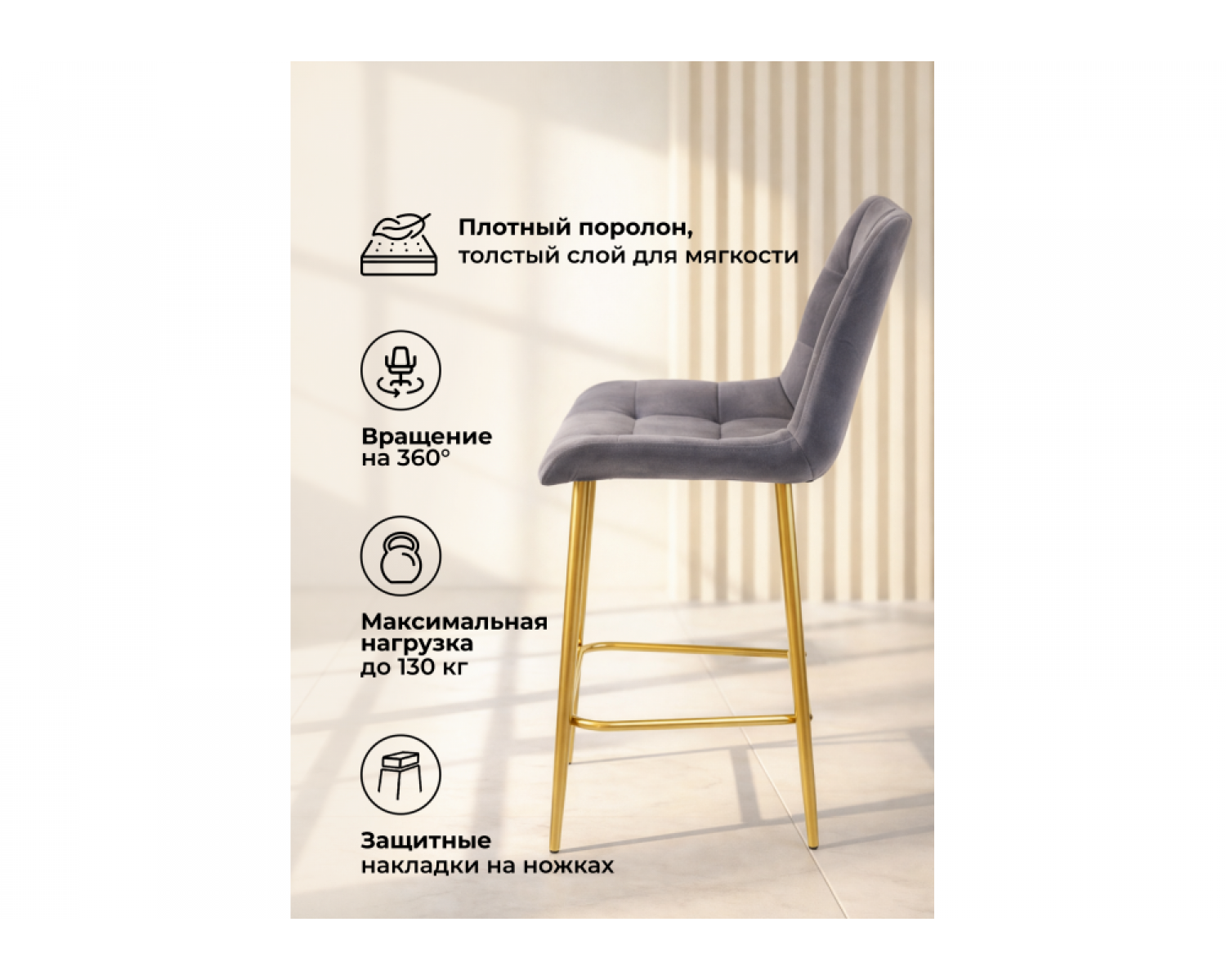 Полубарный стул Челси 360 темно-серый (zd 995) / золотой идеально впишется в любой интерьер, украшая повседневную жизнь. Уникальный дизайн и трендовый цвет создаст ощущение уюта и тепла в любом помещении.