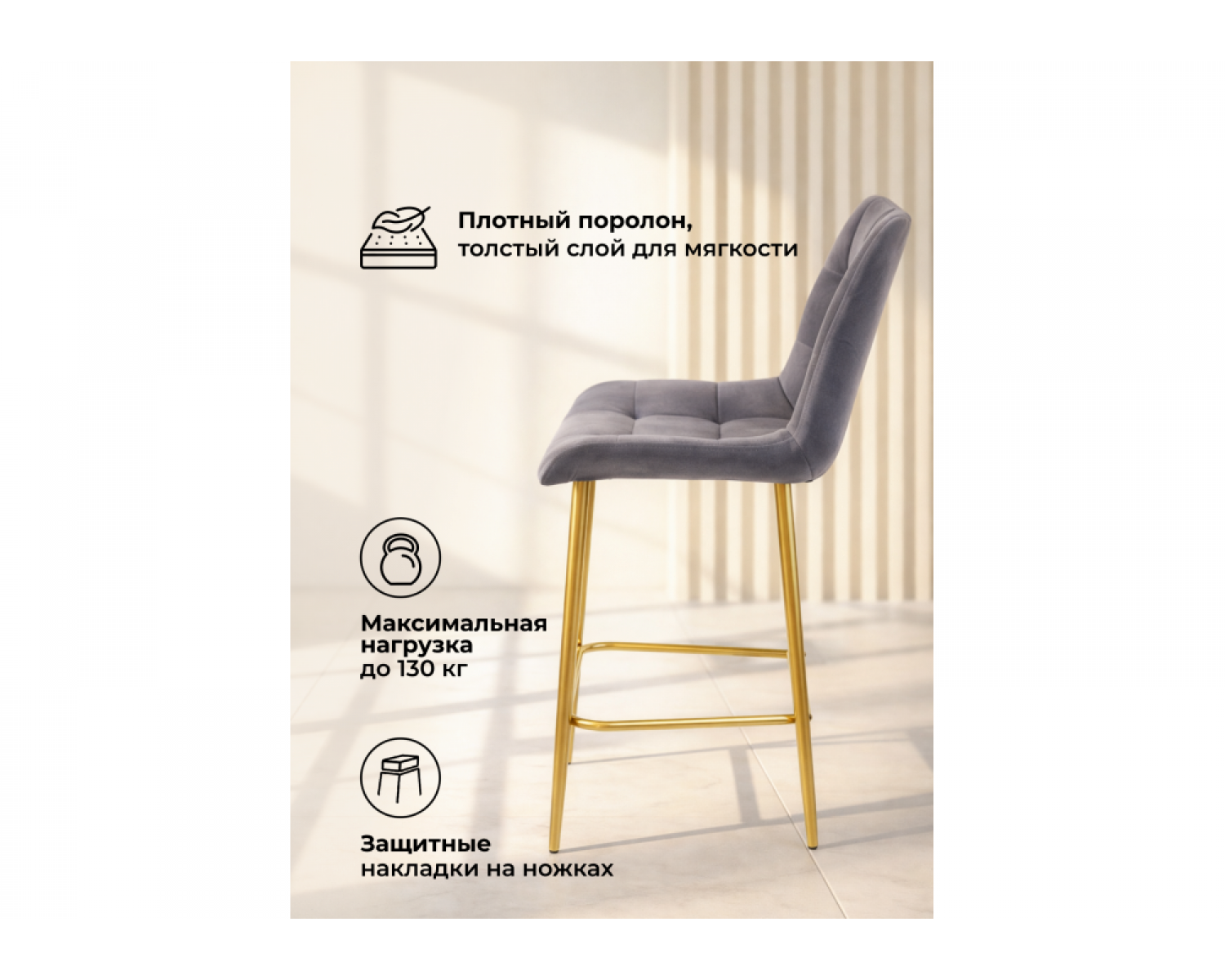 Полубарный стул Челси темно-серый (zd 995) / золотой идеально впишется в любой интерьер, украшая повседневную жизнь. Уникальный дизайн и трендовый цвет создаст ощущение уюта и тепла в любом помещении.