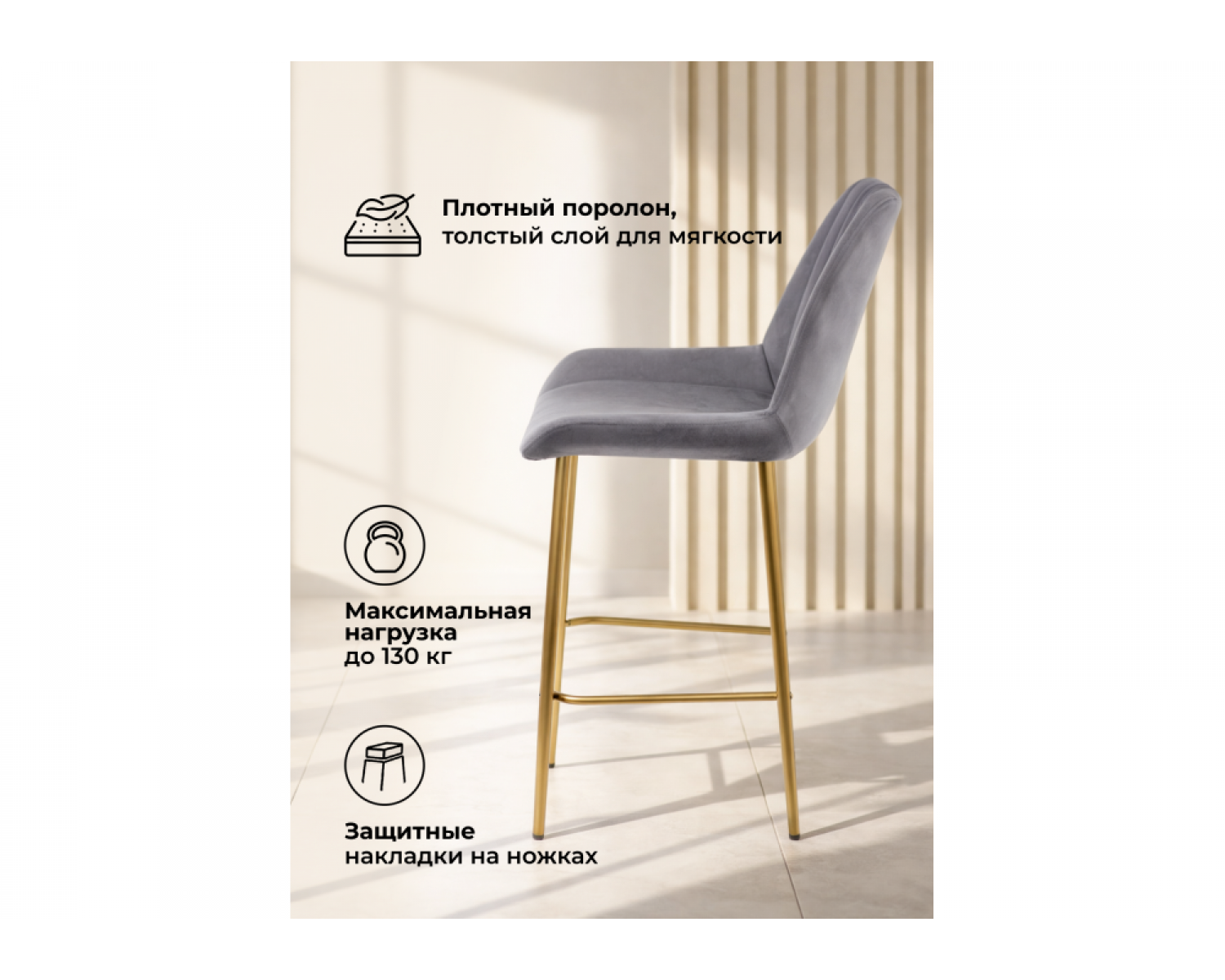 Полубарный стул Седа темно-серый (zd 995) / золотой идеально впишется в любой интерьер, украшая повседневную жизнь. Уникальный дизайн и трендовый цвет создаст ощущение уюта и тепла в любом помещении.