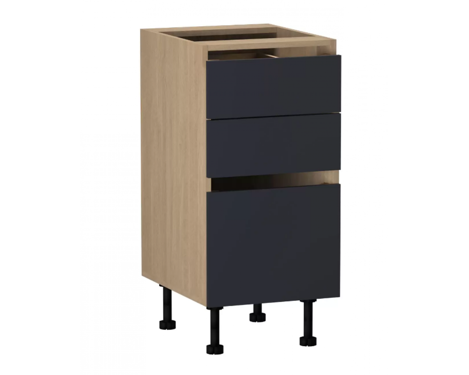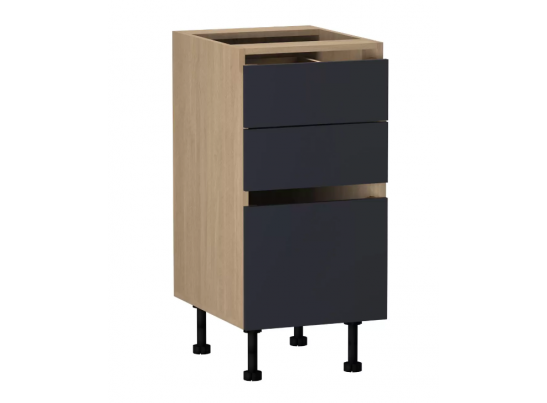 Стол с ящиками Женева — вместительный элемент для хранения кухонной утвари, продуктов и посуды. В нём найти содержимое быстрее, чем на обычной полке нижнего яруса шкафов. Ящики легко открываются за край фасада, при этом двигаются плавно и бесшумно благодаря направляющим с доводчиком.