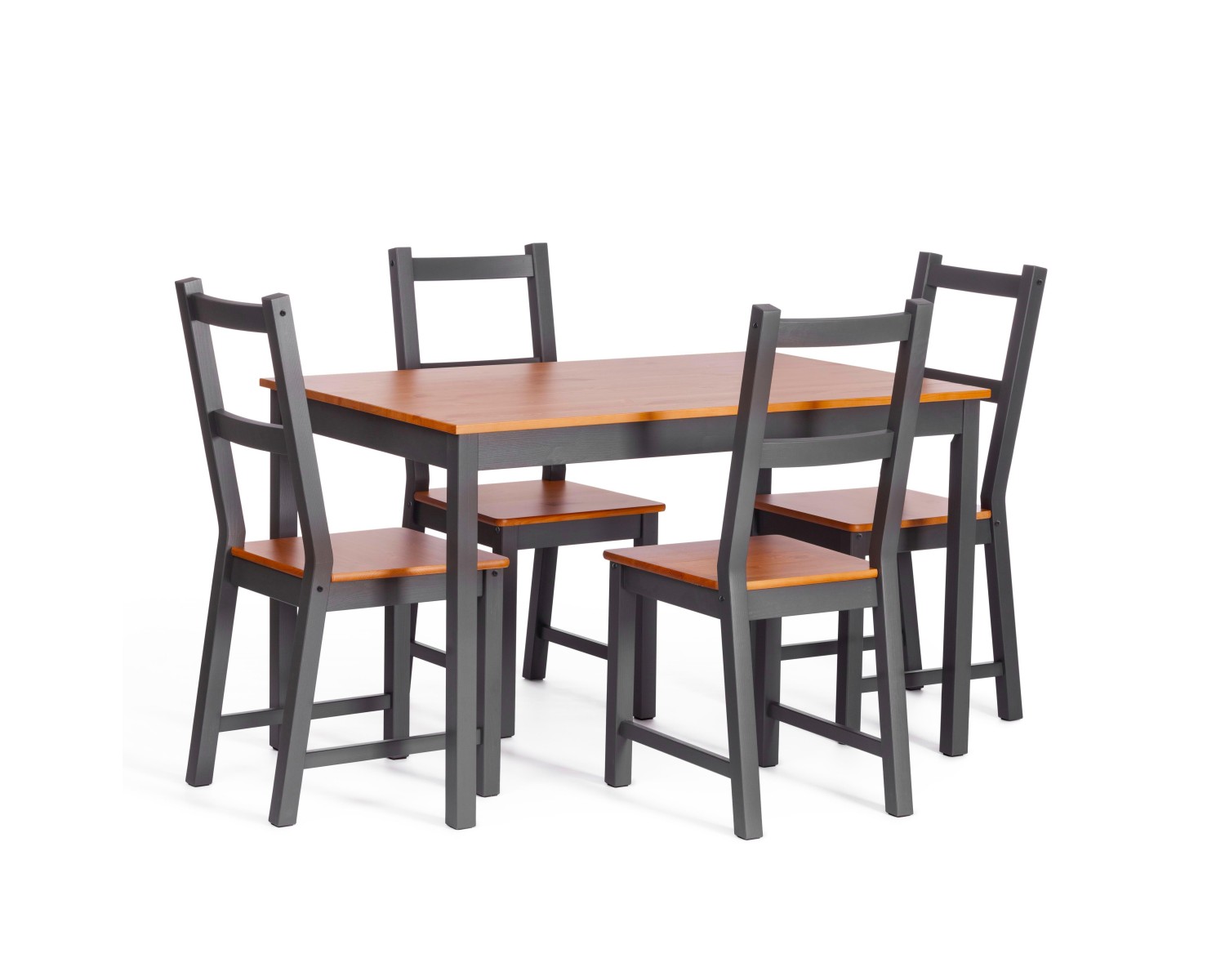 Комплект обеденный Соната/Sonata (стол+4стула) массив сосны, стол:120х75х75см стул:41х50х95см, антик /графит