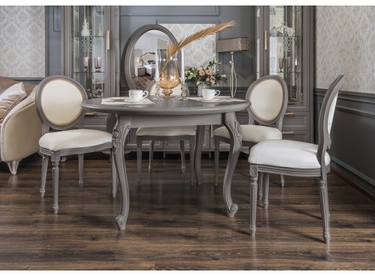 МОККО — это столовая группа с круглым столом и мягкими стульями на античных ножках.