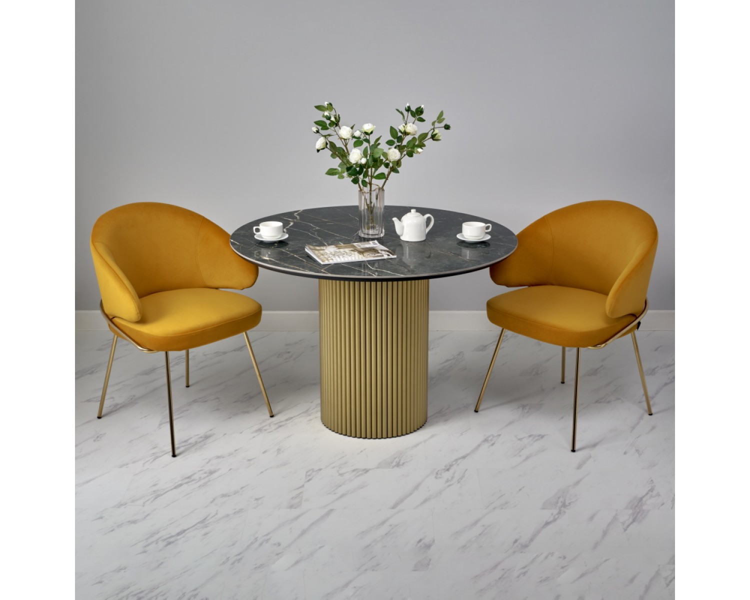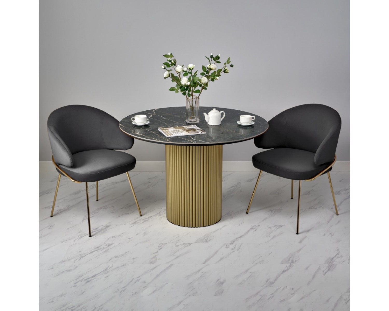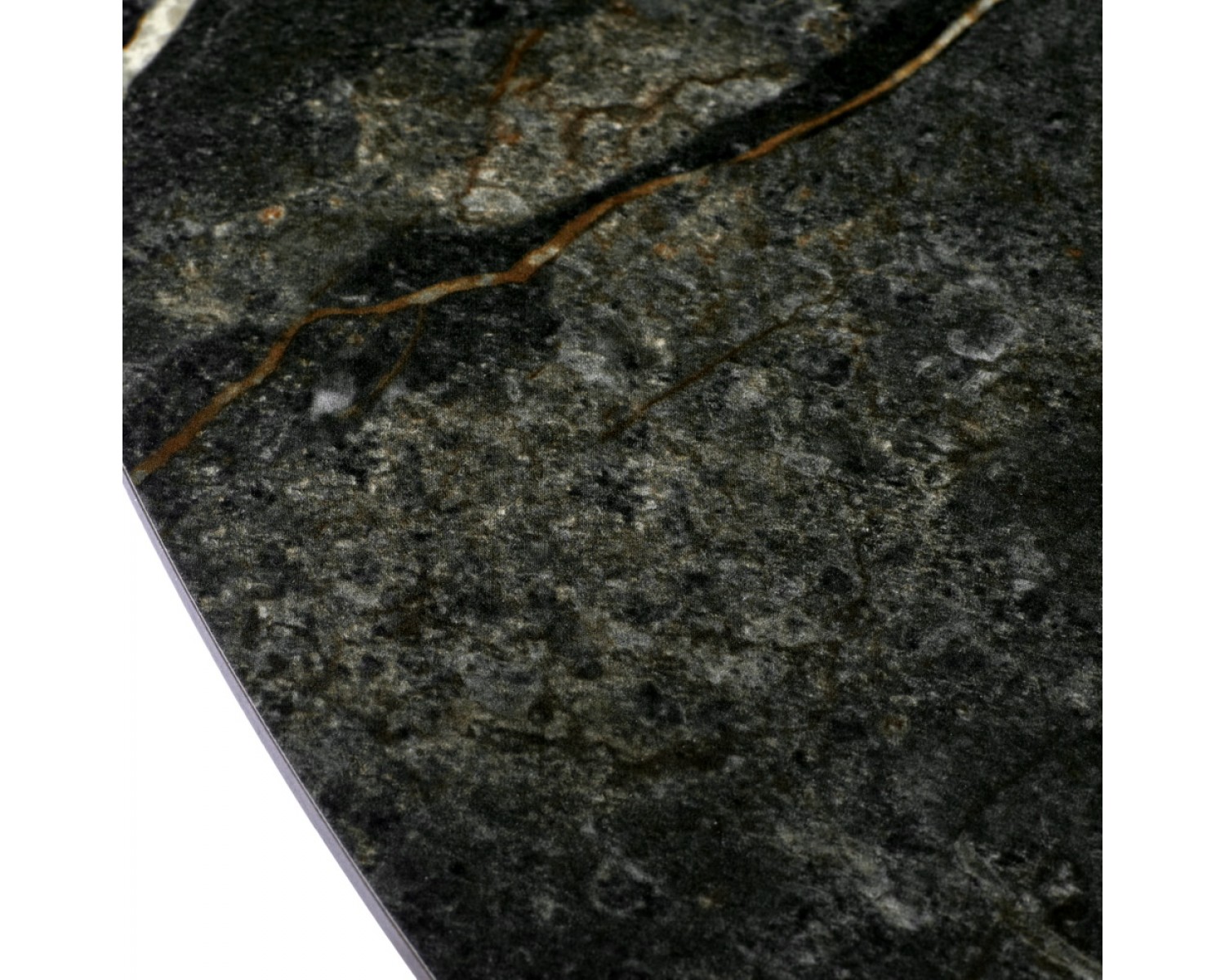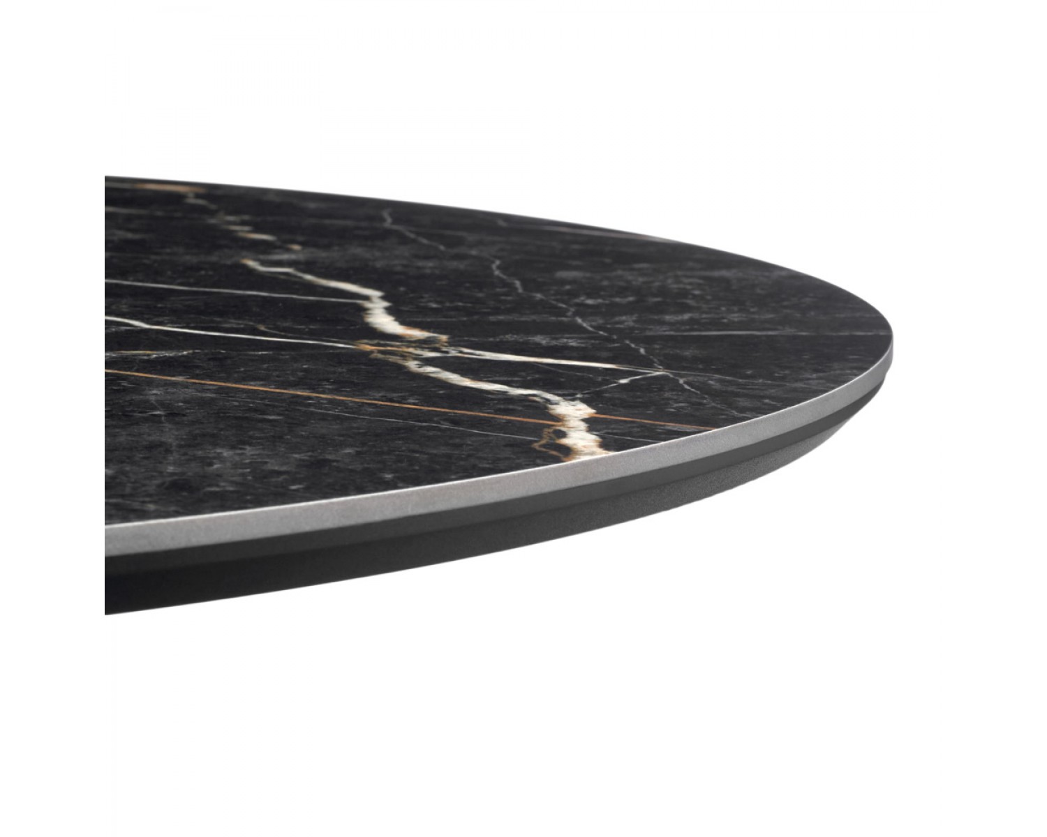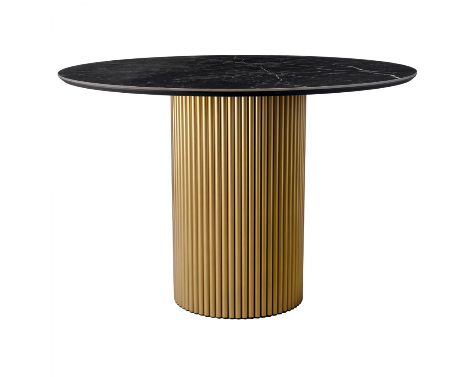 Диаметр столешницы: 110 см. Высота: 75 см Толщина столешницы: 2,3 см Нераздвижной круглый стол. Опора выполнена из металла. Столешница выполнена из керамики. Вес: 59кг