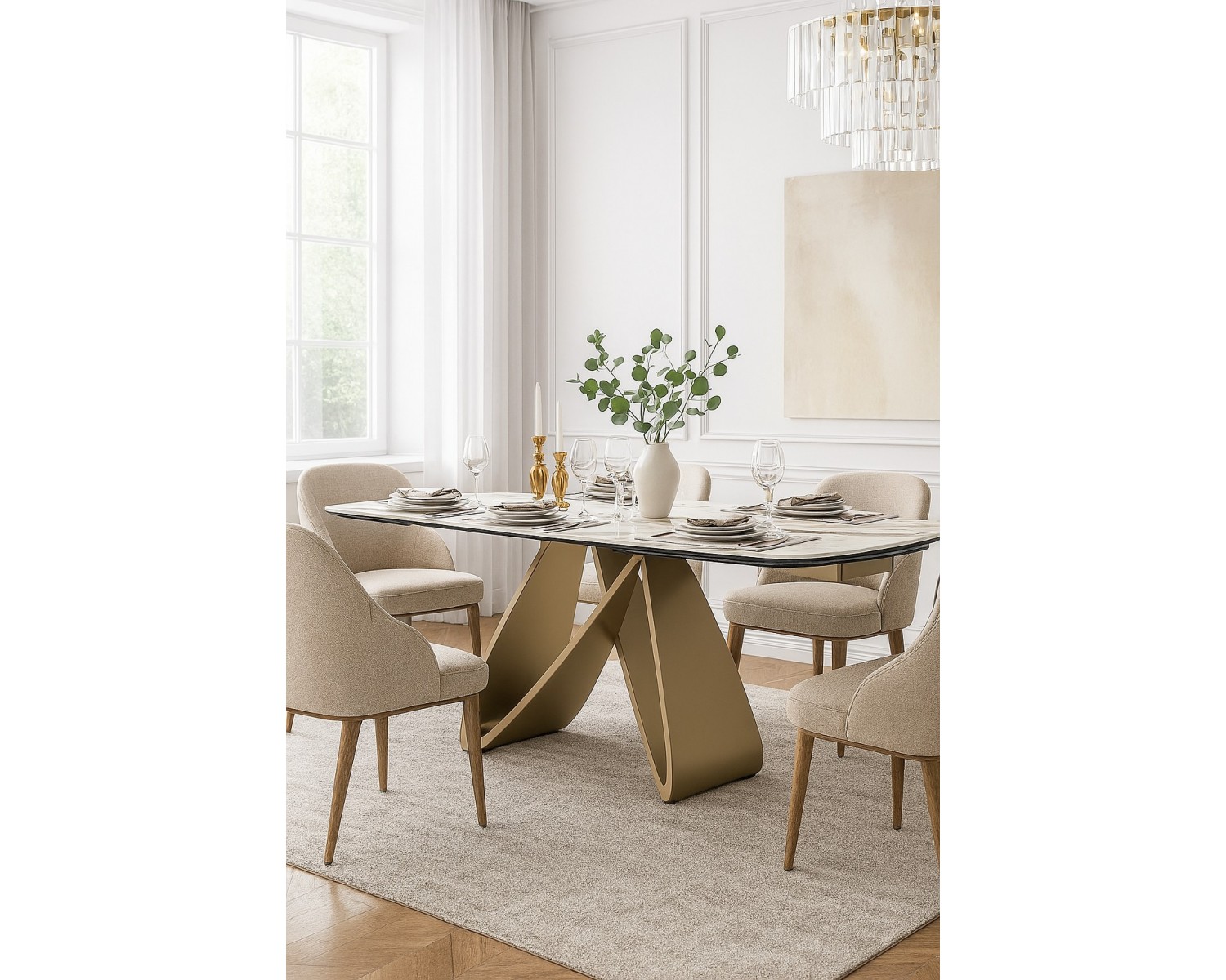Стол дизайнерский PALACIO 180 с матовой керамической столешницей контрастный мрамор
