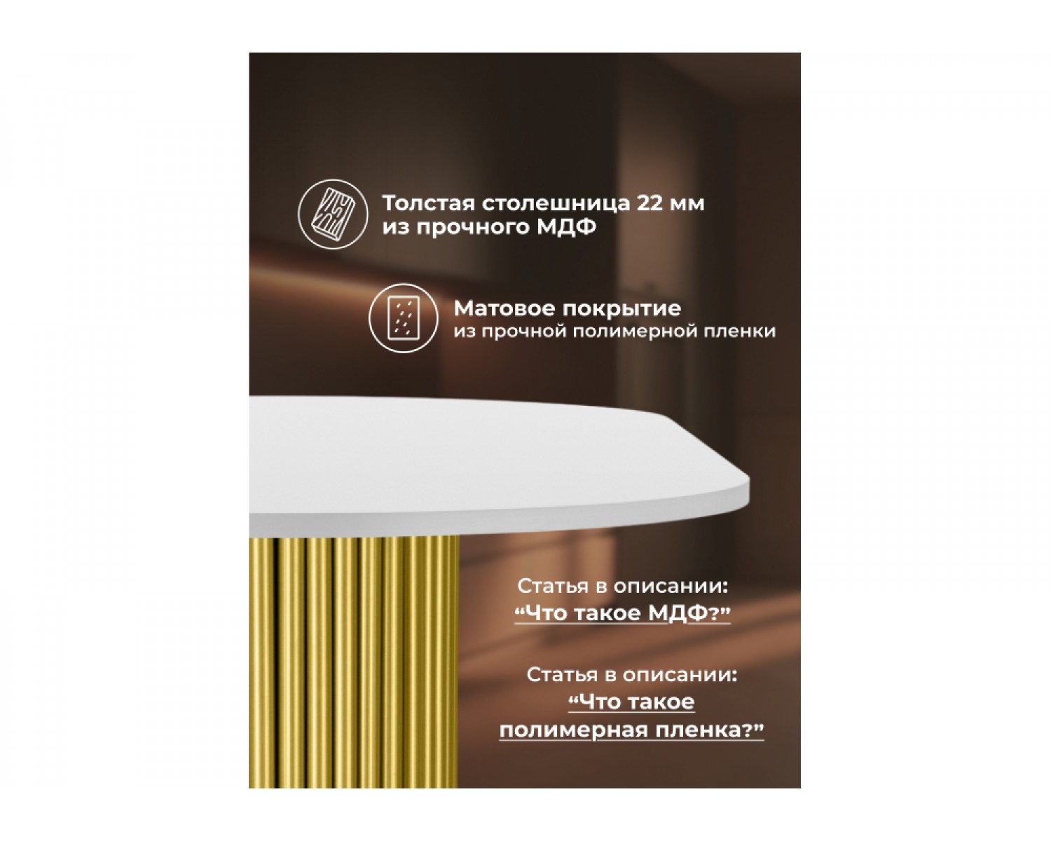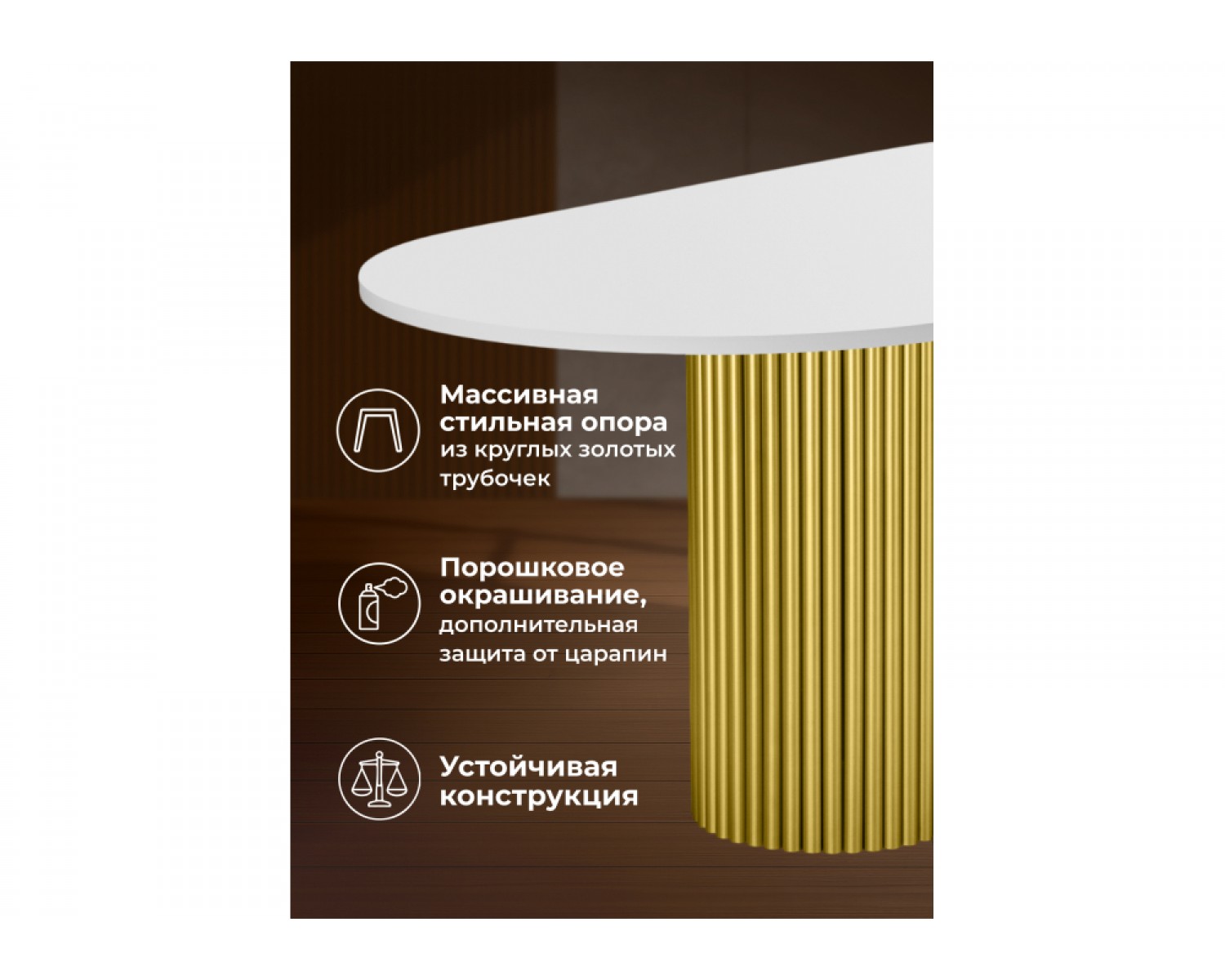 Деревянный стол Барон О 180 х 90 белая пленка шагрень / золотые ноги идеально впишется в любой интерьер, украшая повседневную жизнь. Уникальный дизайн и трендовый цвет создаст ощущение уюта и тепла в любом помещении.