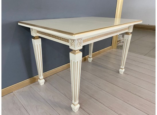 Стол прямоугольный раскладной Инфинити (слоновая кость, патина золото)