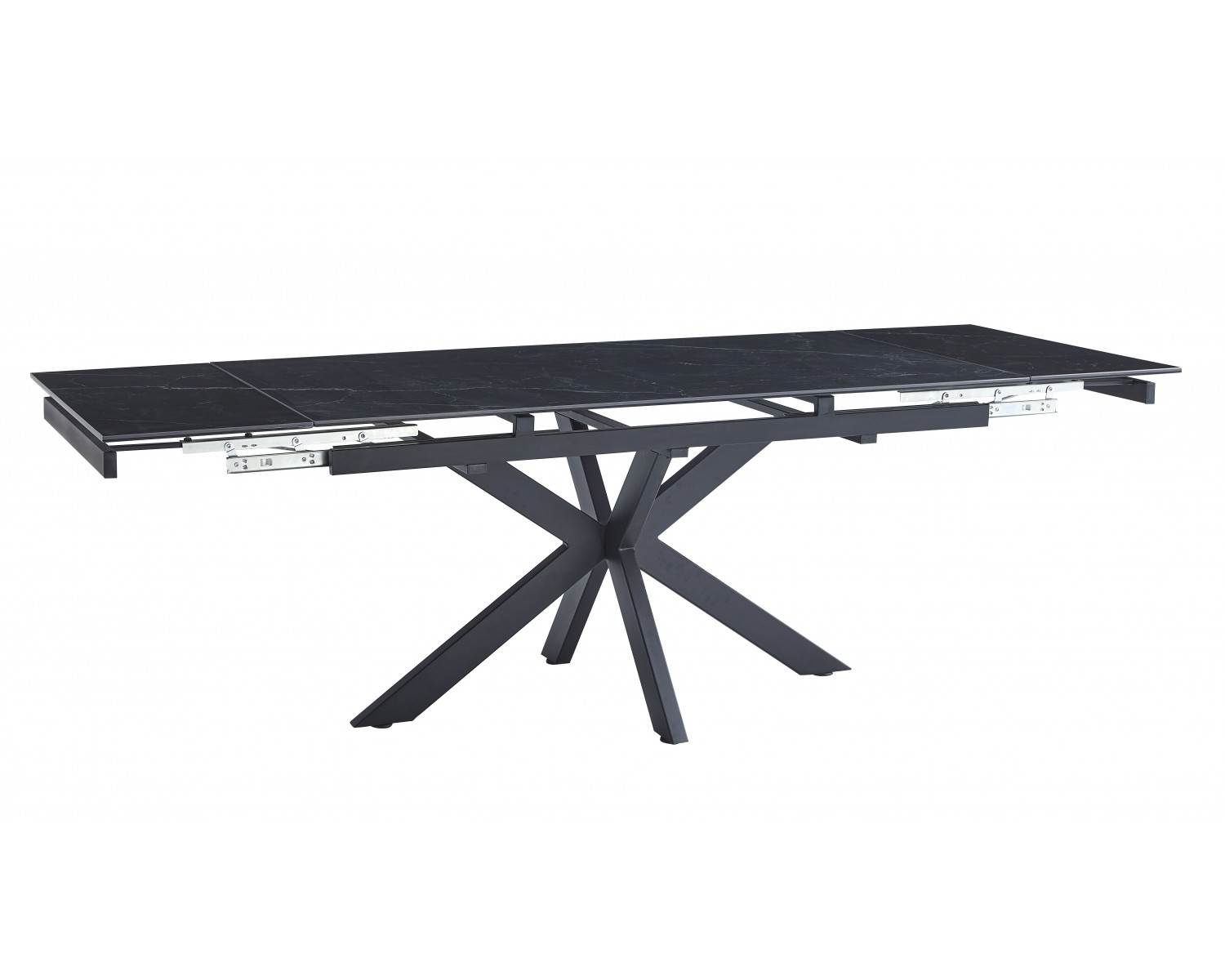 Раскладной обеденный стол. Столешница из Итальянской керамики (8мм) на стекле (4мм) с принтом. Боковые секции выдвигаются при помощи телескопического механизма. Каркас и ножки металлические.