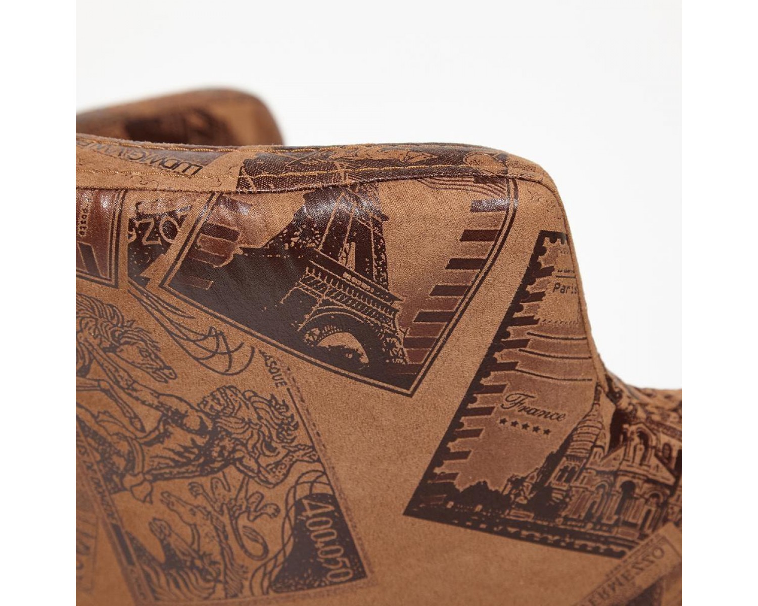 Мягкое кресло из европейского бука с обивкой из коричневой ткани с винтажным рисунком. Страна-производитель: Армения