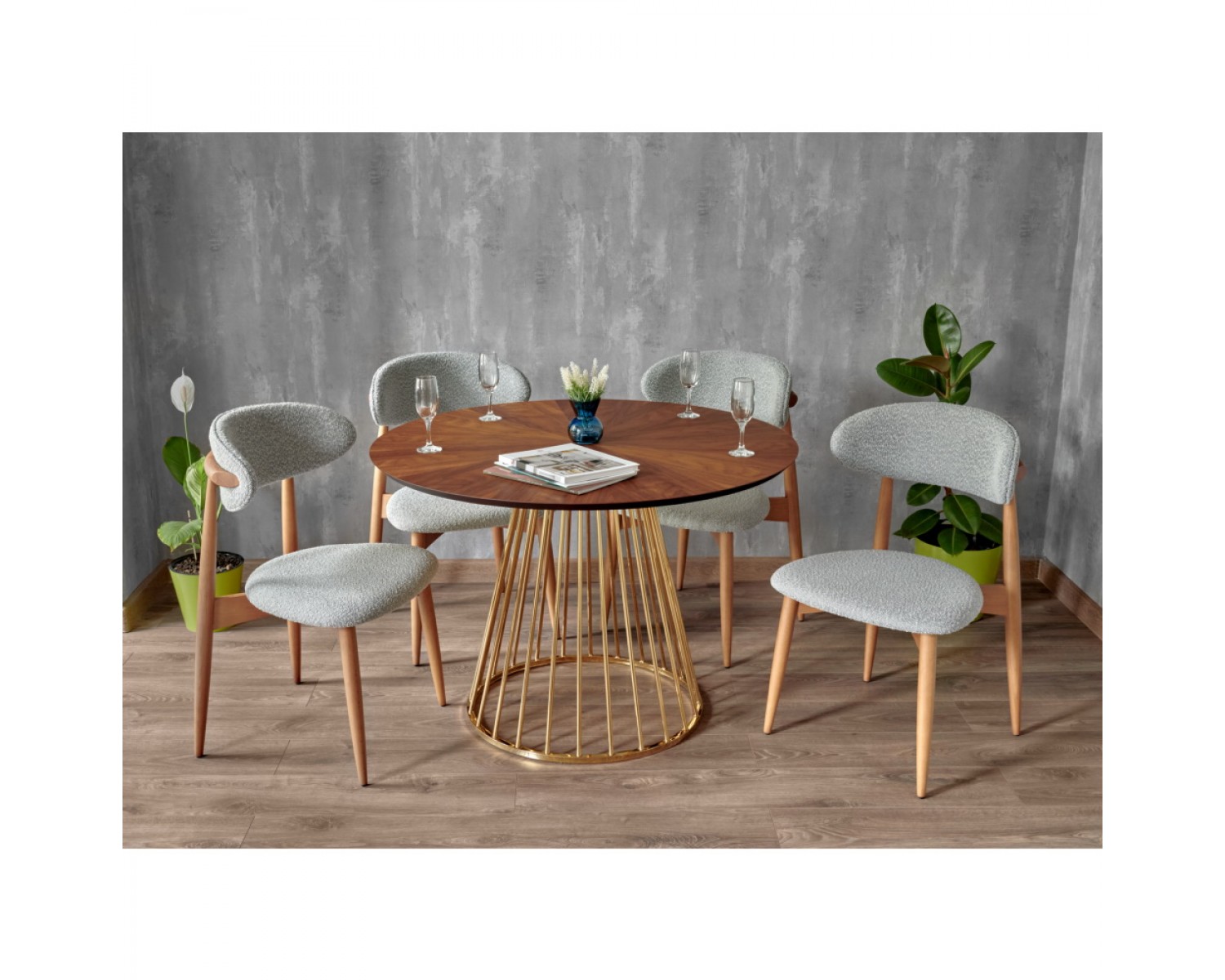 Стул Lucas светло-серый букле с ножками цвета орех в Каменске-Уральском