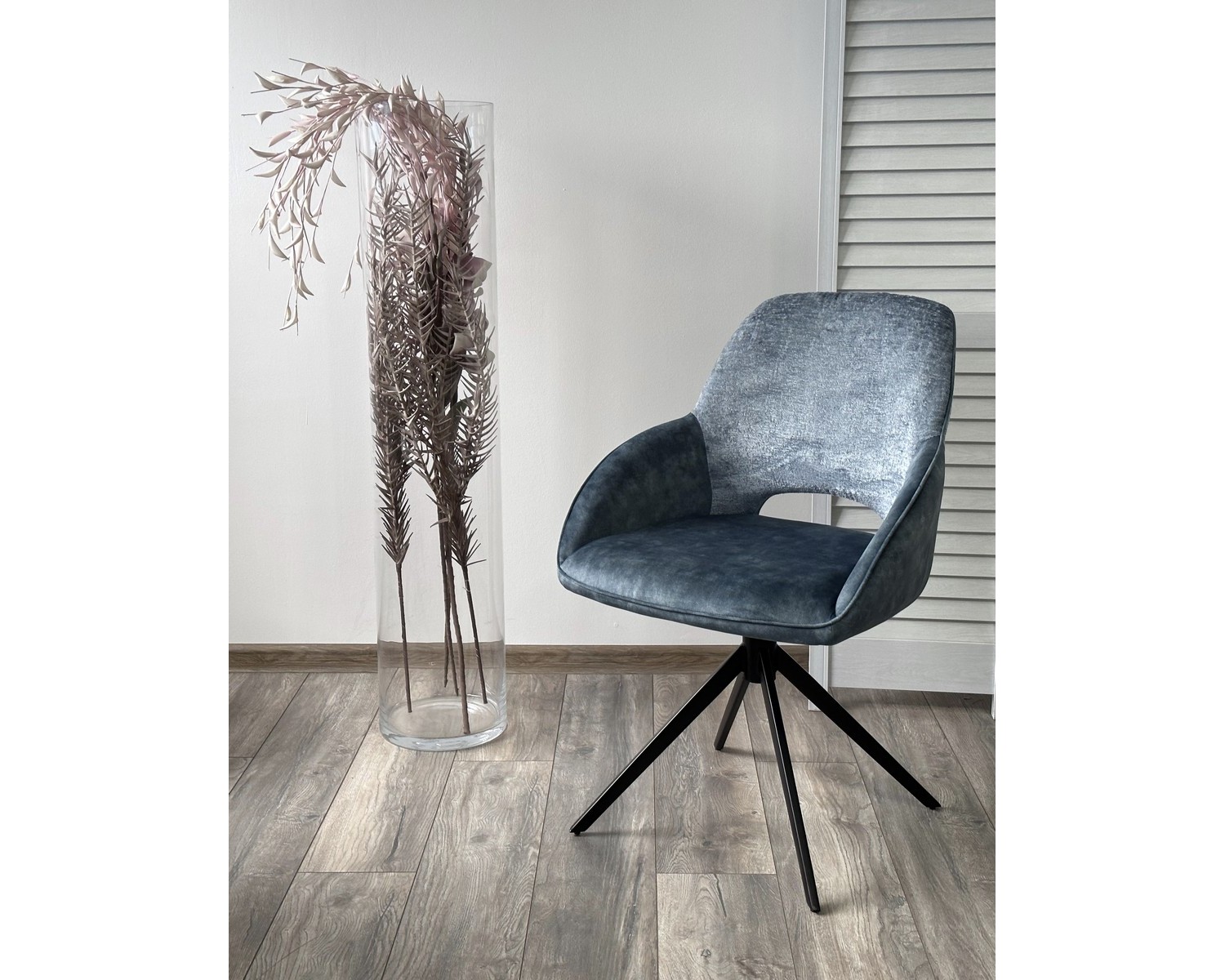 Стул BERRIES 360 град. Синий Loris-37, велюр/ темно-синий 7525-56, велюр/ черный каркас, DISAUR