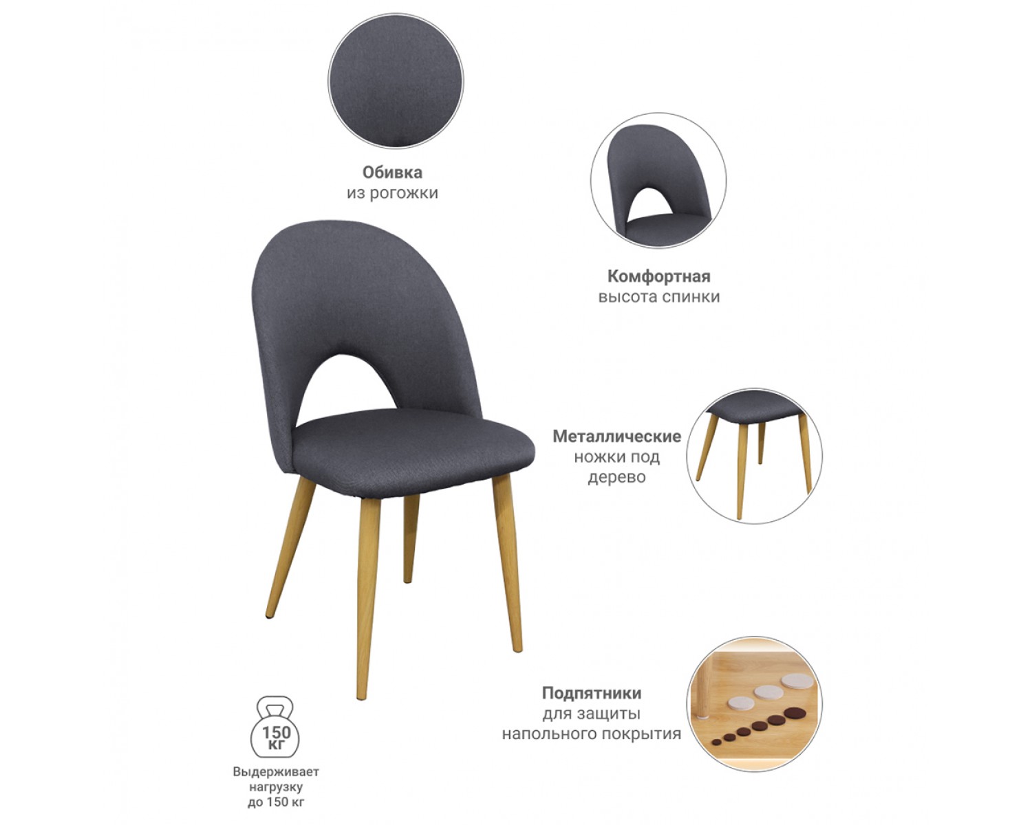 Материал: металл, фанера, пенополиуретан, рогожка Материал ножек: металл Цвет ножек: дерево Размеры, см: Ш47 х Г56 х В86,5 Ширина сиденья: 47см Глубина сиденья: 46см Высота сиденья: 48см Высота стула: 86,5см Расстояние между ножками: 38х38см Диаметр ножек у сиденья: 3,8см Вес: 6,1кг Максимальная нагрузка 120 кг. Поставляется в разобранном виде. В комплекте идёт инструкция и комплект аксессуаров для сборки.