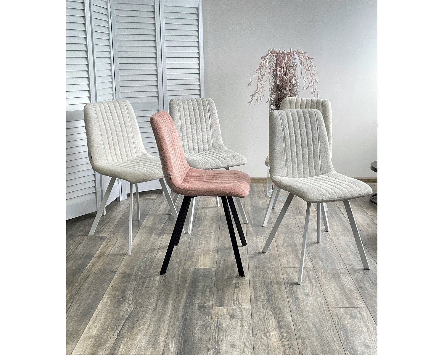 Стул ELVIS WZ2042-02 светло-бежевый фактурный велюр / белый каркас в Каменске-Уральском