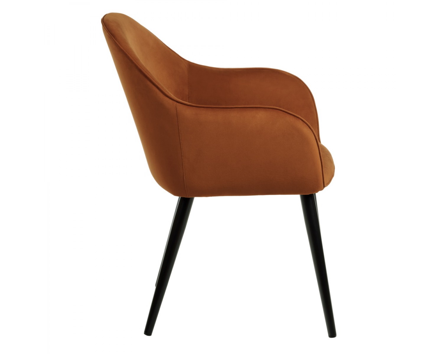 Хотите купить кресло? Не спешите! Стул Frida такой же мягкий и удобный, как кресло и тоже имеет подлокотники. При этом он намного легче, мобильнее и занимает меньше места. Отличительная особенность серии в использовании удобных подлокотников и мягкой рогожки для обивки. Нейтральный терракотовый цвет подчеркнет классический интерьер. Сочетание терракотового и черного цветов — это классика, в которой стулья для кухни или гостиной подчеркнут строгость и изысканность интерьера. А металлические ножки будут отлично сочетаться с мебелью с аналогичными ножками или фурнитурой.