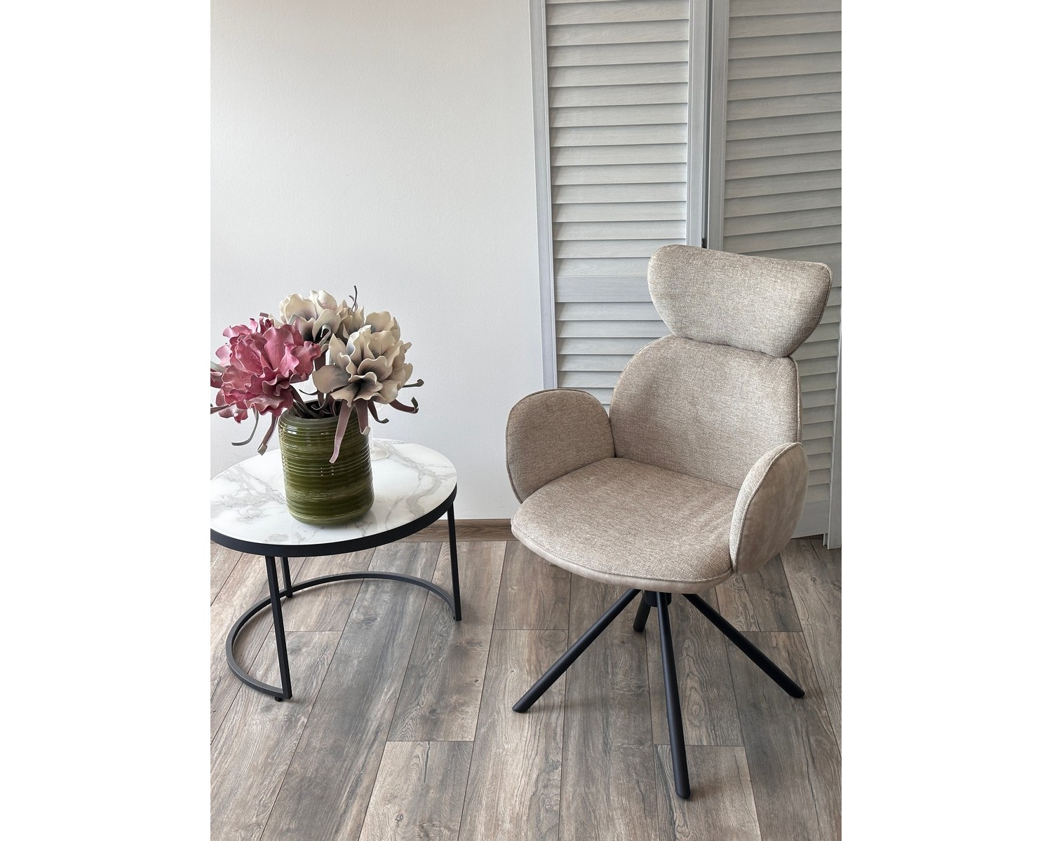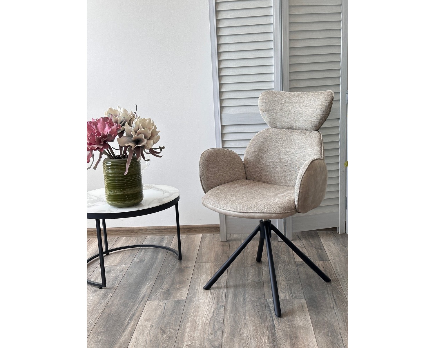 Стул VARDY 360 град.поворот. Brego-31 Бежевый, ткань/ 7525-01 Бежевый, велюр/Черный, ®DISAUR