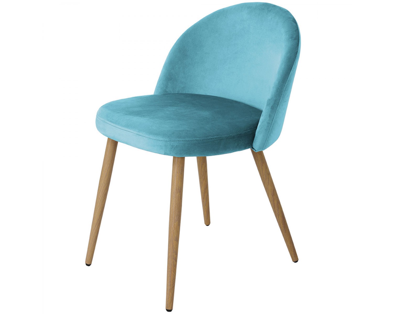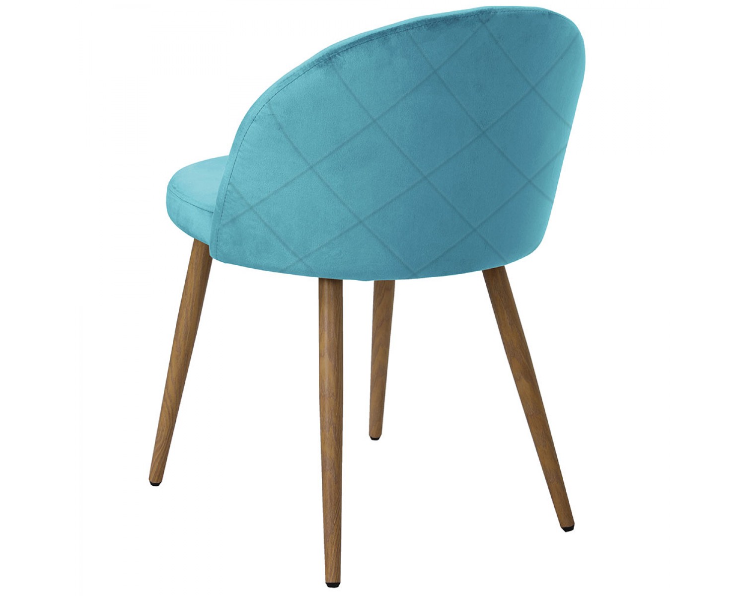 Ромбовидная простёжка и оригинальные плавные формы сидения и спинки. Материал ножек: металл Материал сиденья и спинки: фанера, пенополиуретан, велюр Цвет: бирюзовый Размеры, см: Ш53 х Г54 х В76 Вес: 7кг