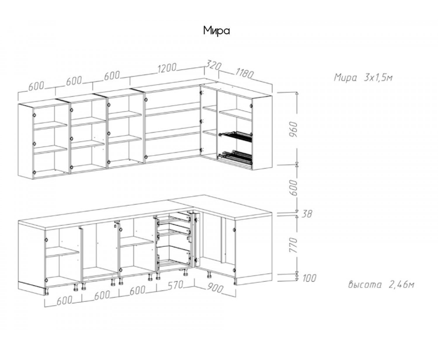 Угловой кухонный гарнитур Мира 3,0*1,5
