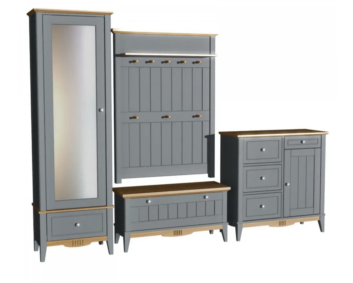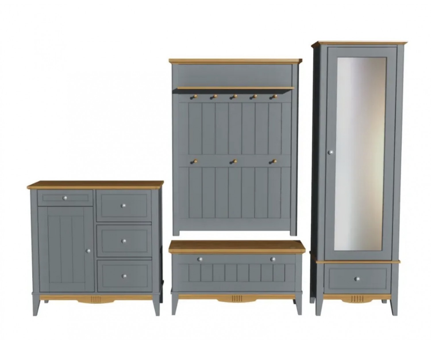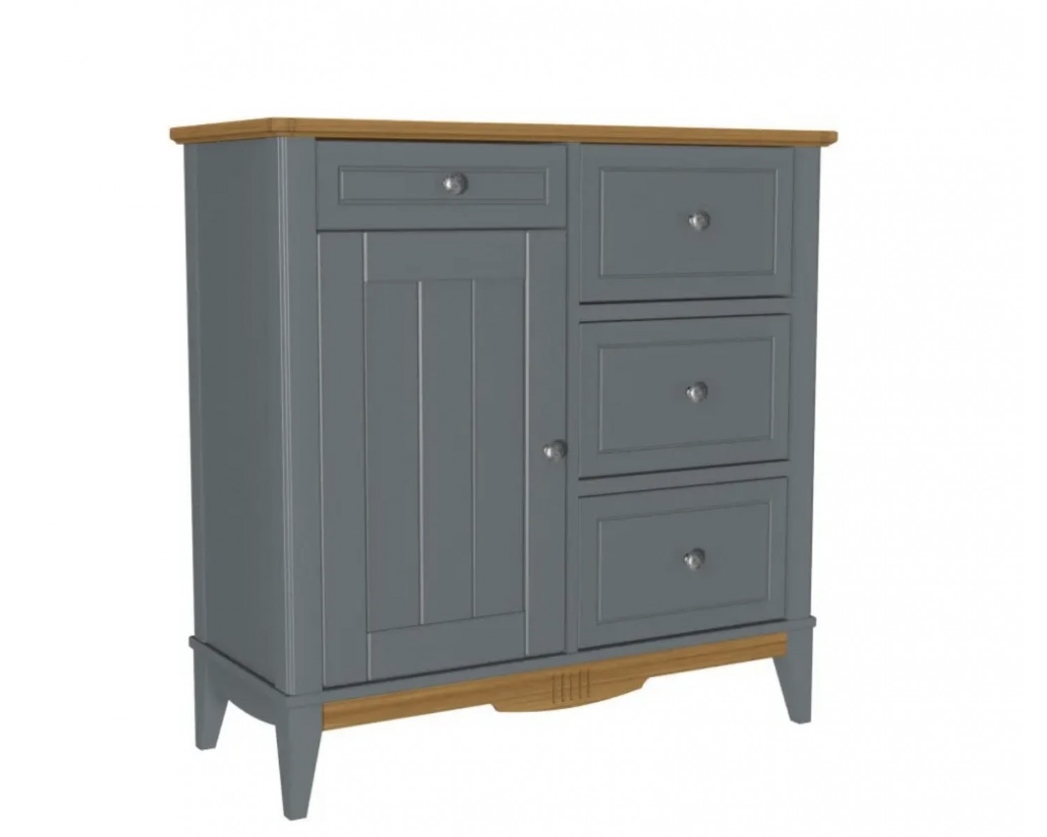 Комод 113 для прихожей "Пенни", универсальный пр/лев серый 7046/антик 24 из натурального дерева, с четырьмя выдвижными ящиками и распашной дверцей. При сборке комода вы можете выбрать расположение ящиков: либо справа, либо слева, в зависимости от ваших предпочтений. Этот комод выполнен в популярном скандинавском стиле.