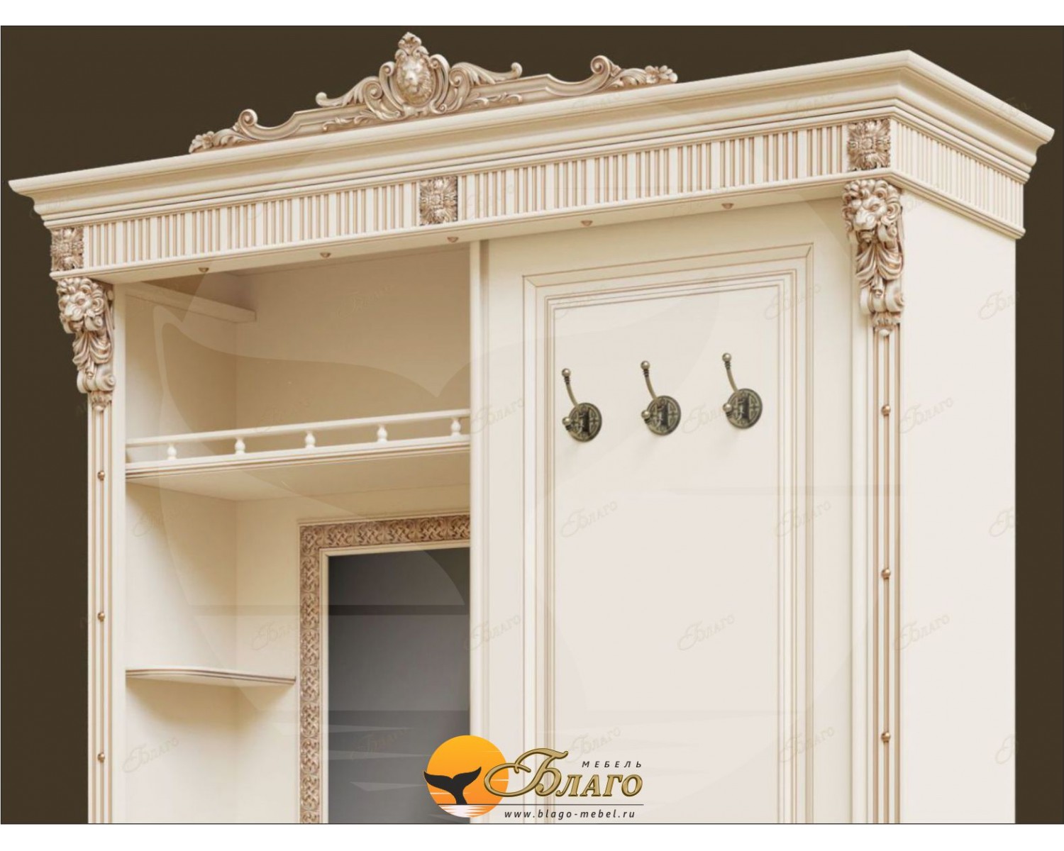Классическая прихожая-купе Благо, изысканными декорами и патинированными фасадами