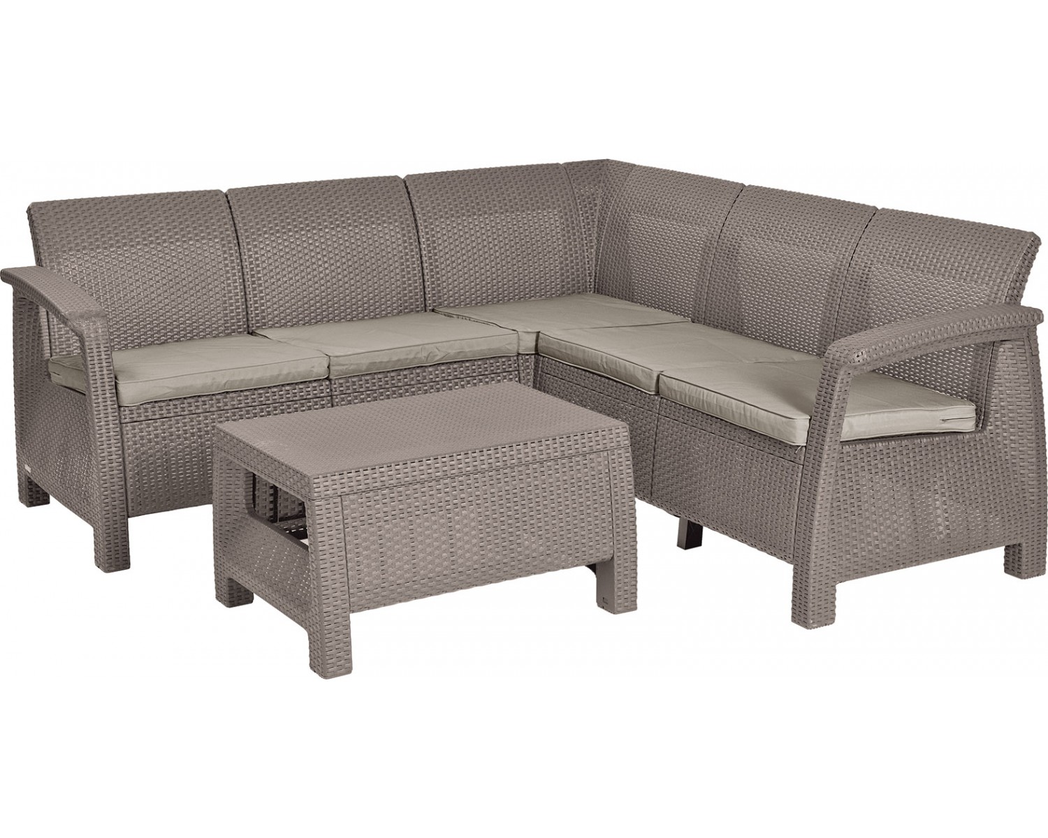 Элегантность и функциональность в одном комплекте! Выполненный с высокой тщательностью угловой комплект Корфу Релакс, состоящий из удобного дивана и стильного столика, обеспечит пользователям максимальный комфорт использования. Мебель легкой, но устойчивой конструкции, выполнена из высококачественного полимера, устойчивого к воздействию неблагоприятных погодных условий/ Оригинальная текстура мебели, напоминающая ротанговый переплет, профилированное сиденье и мягкие подушки безусловно являются преимуществом данного продукта.