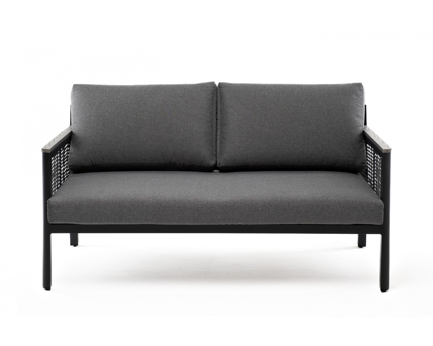 "Сан Ремо" диван 2-местный плетеный из роупа, каркас алюминий темно-серый, роуп серый, ткань серая в Каменске-Уральском