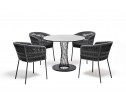 "Диего" обеденная группа на 4 персоны со стульями "Бордо" плетения колос, столешница "серый гранит"