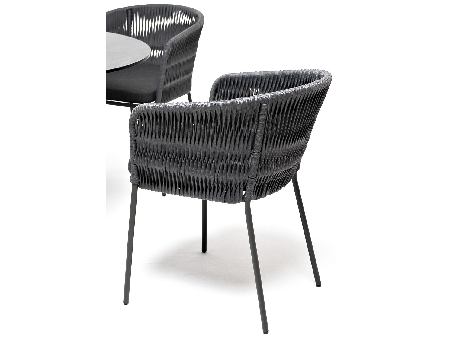 Обеденная группа «Диего» предназначена для комфортного размещения 4 человек. В комплект входят стол «Диего» с HPL-пластиковой столешницей, диаметром 900 мм в цвете «серый гранит». Высота данного стола составляет 750 мм, что обеспечивает оптимальный уровень для сидения и расположения посуды. Вместе с этим, в комплектацию входит 4 плетеных стула «Бордо», выполненных с использованием высокопрочного роуп-волокна серого цвета с плетением вида «колос». Стулья имеют размеры 570×620×775 мм и устойчивый каркас из стали, окрашенной порошковой краской в тон материала плетения. Обеденная группа «Диего» является стильным и практичным решением для обустройства кухни или жилой зоны, она идеально сочетается с различными интерьерами благодаря универсальности использованных материалов и цвета. Она подходит как для ежедневного использования, так и для приема гостей, обеспечивая удобство сидения и качественное исполнение всех элементов.