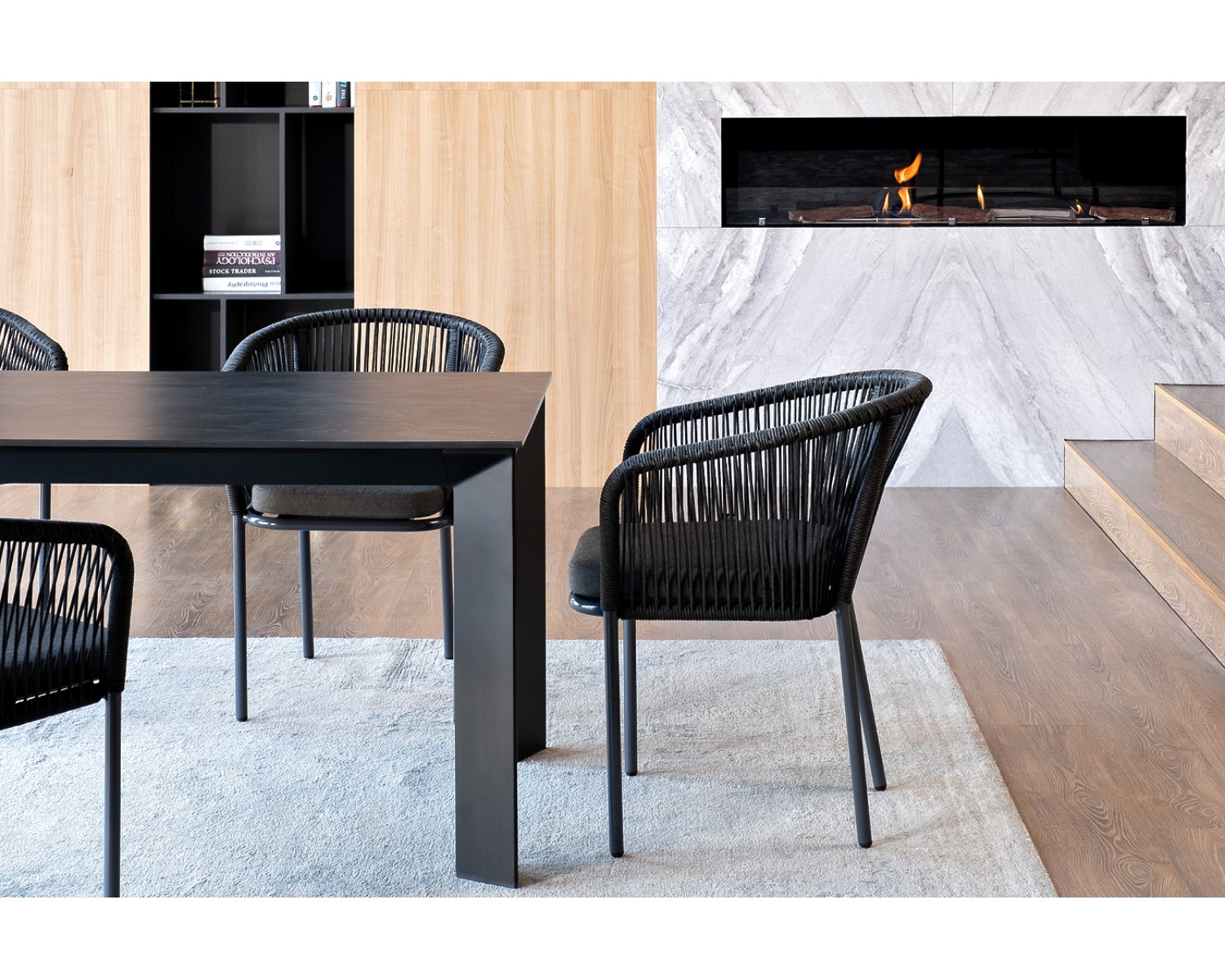 Обеденная группа «Венето» рассчитана на 4 персоны. В состав комплекта входит: - Стол «Венето» со столешницей из HPL-пластика, размер столешницы - 1600×800 мм, цвет - «серый гранит». Высота стола - 750 мм - 4 плетеных стульев «Марсель» из роупа, размером - 570×620×775 мм, цвет роупа - темно-серый, каркас из алюминия, окрашен порошковой краской в темно-серый оттенок.