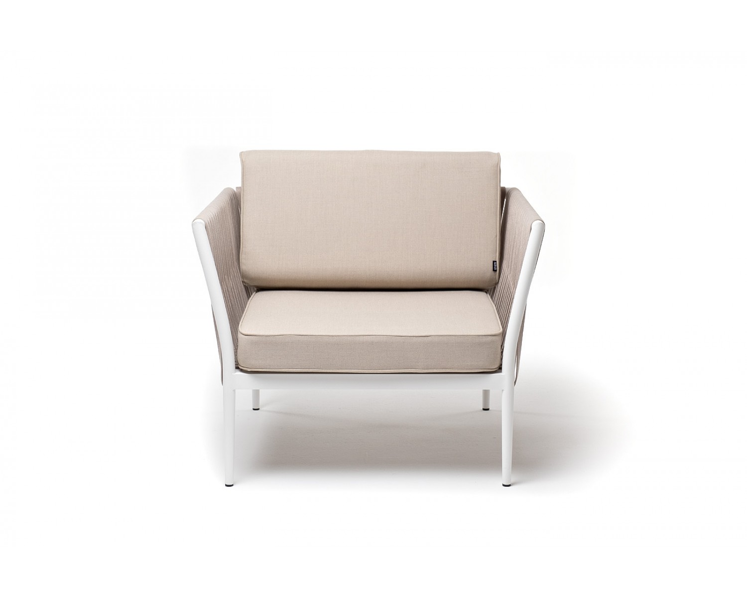 "Касабланка" кресло плетеное из роупа, каркас алюминий белый муар, роуп бежевый 20мм, ткань бежевая 052 в Каменске-Уральском