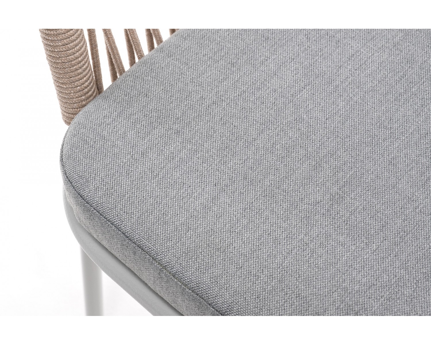 "Лион" стул плетеный из роупа, каркас из стали светло-серый (RAL7035) муар, роуп бежевый круглый, ткань светло-серая в Каменске-Уральском
