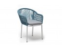 "Лион" стул плетеный из роупа, каркас из стали светло-серый (RAL7035) муар, роуп бирюзовый круглый, ткань светло-серая в Каменске-Уральском
