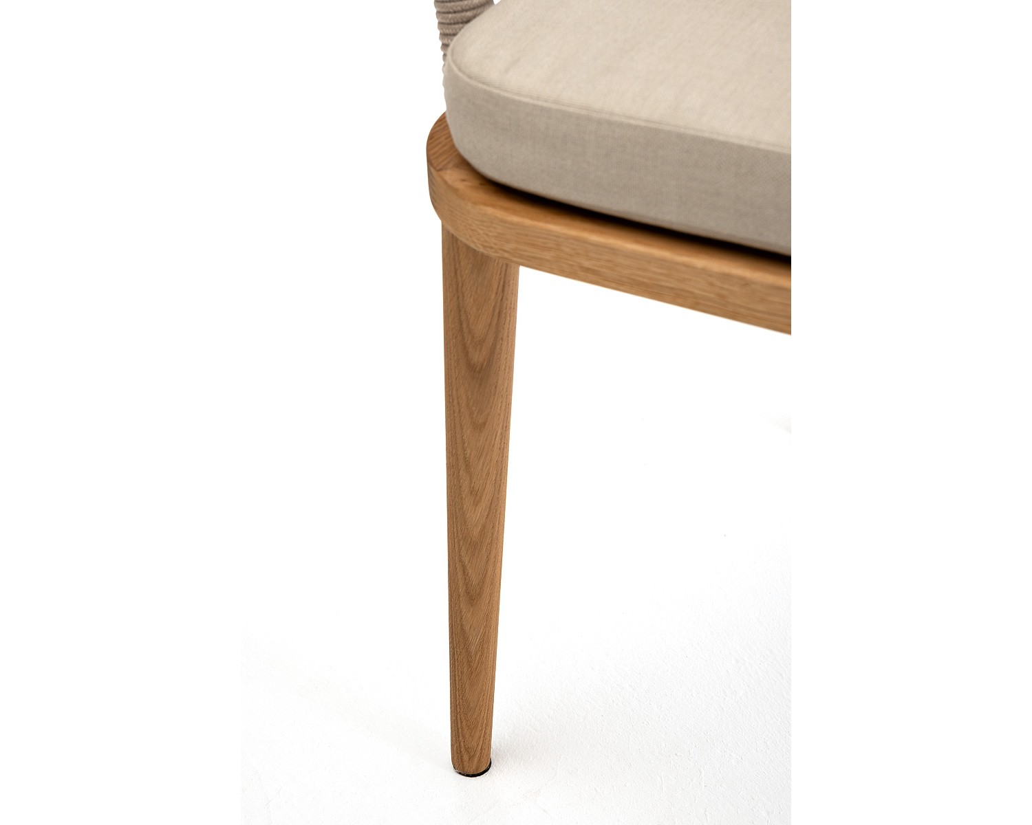 "Лион" стул плетеный из роупа, основание дуб, роуп бежевый круглый, ткань бежевая в Каменске-Уральском