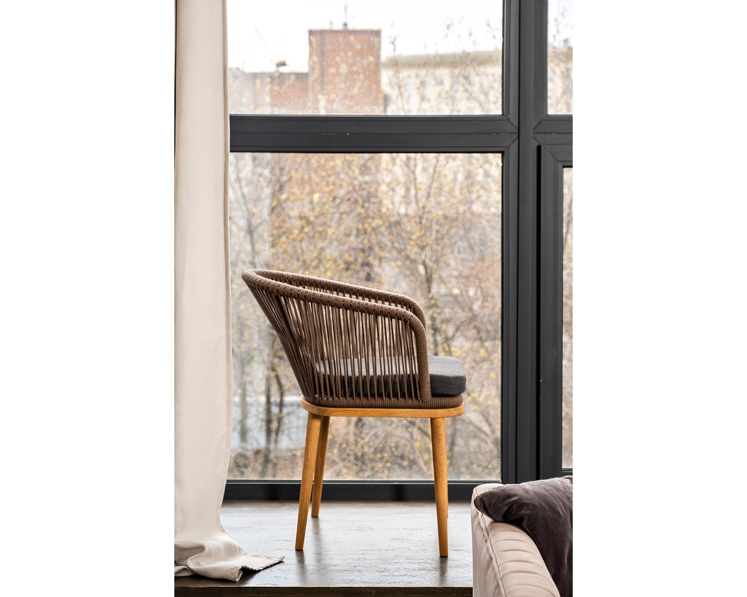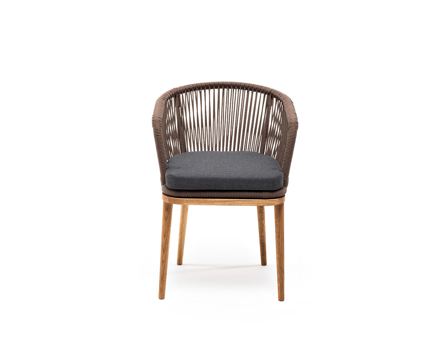 Стул "Марсель" предназначен для организации обеденной зоны или зону лаунж. Каркас выполнен из натурального дерева. Оплетка выполнена вручную современным материалом - роупом. Это эластичные синтетические веревки из высокопрочных полиэфирных волокон, предназначенные для изготовления мебели. Цвет оплетки - коричневый. В комплекте одна подушка со съёмным чехлом с влагоотталкивающей пропиткой темно-серого цвета. Чехол можно стирать в стиральной машине с использованием порошков. Размер стула: 570х620х800 мм.
