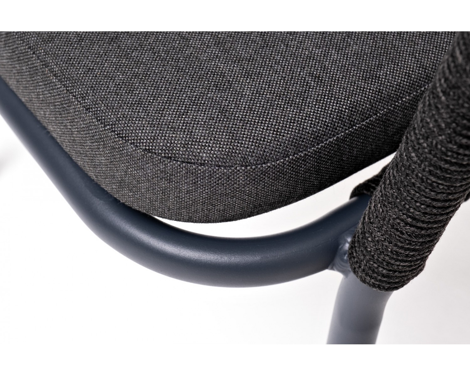 "Марсель" стул плетеный из роупа, каркас алюминий темно-серый (RAL7024) муар, роуп темно-серый круглый, ткань темно-серая 027 в Каменске-Уральском