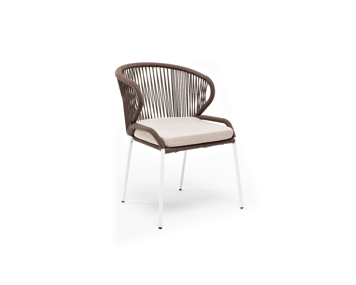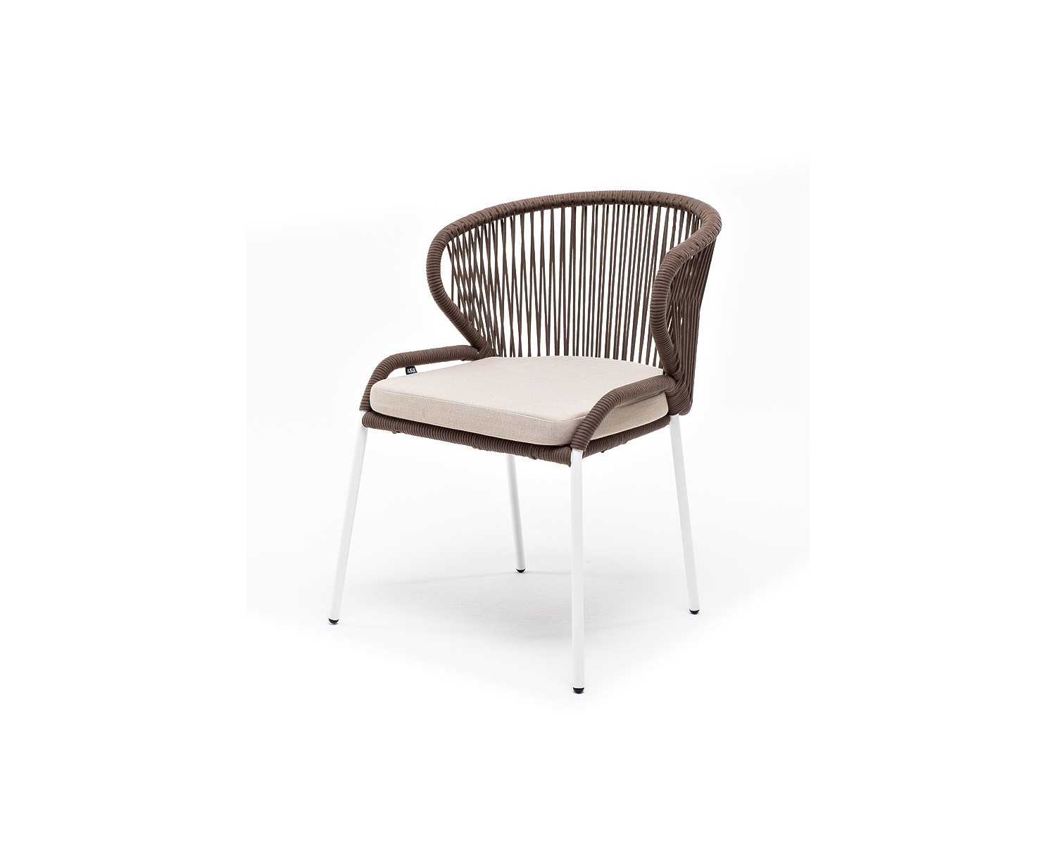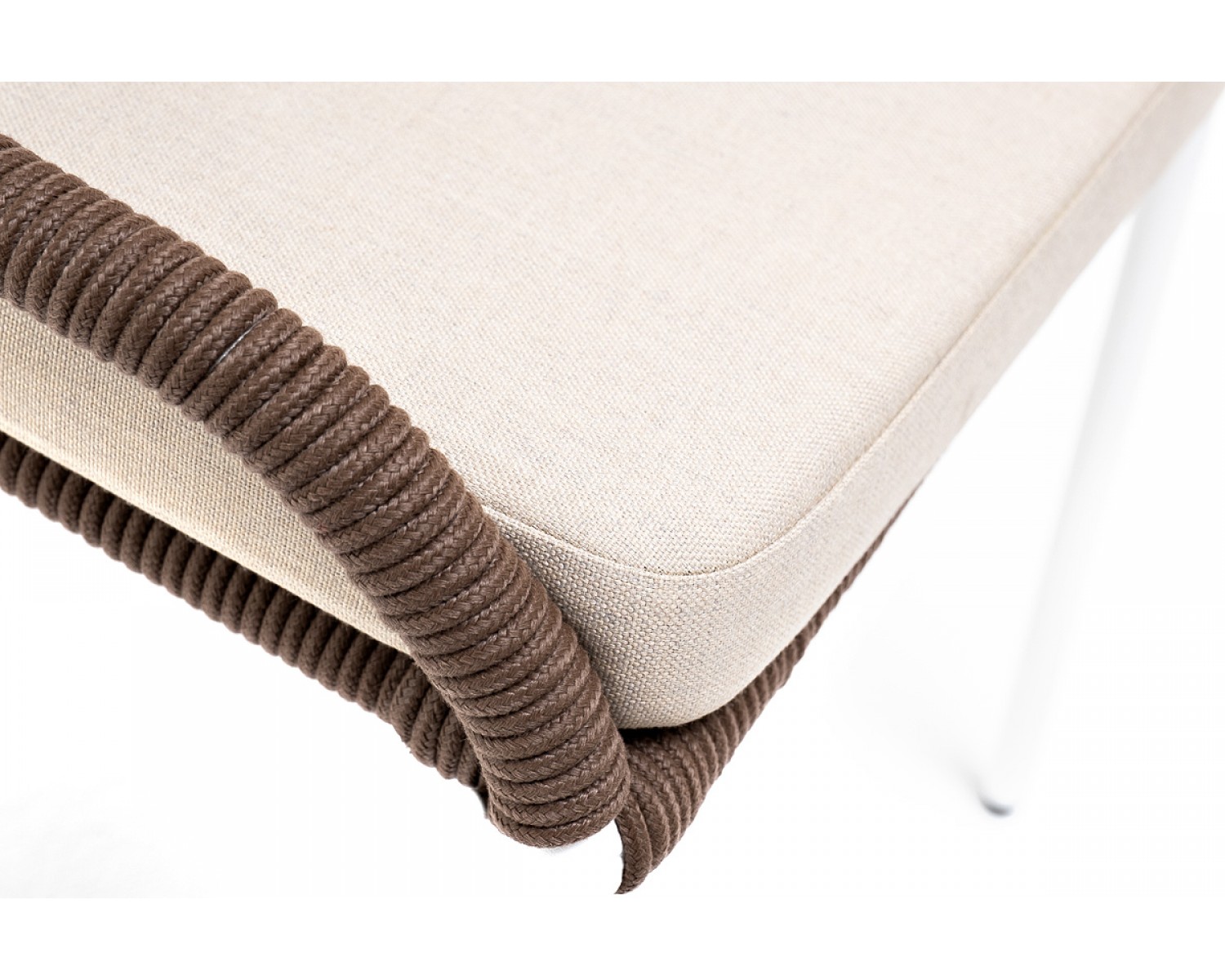 "Милан" стул плетеный из роупа, каркас алюминий белый, роуп коричневый, ткань бежевая в Каменске-Уральском