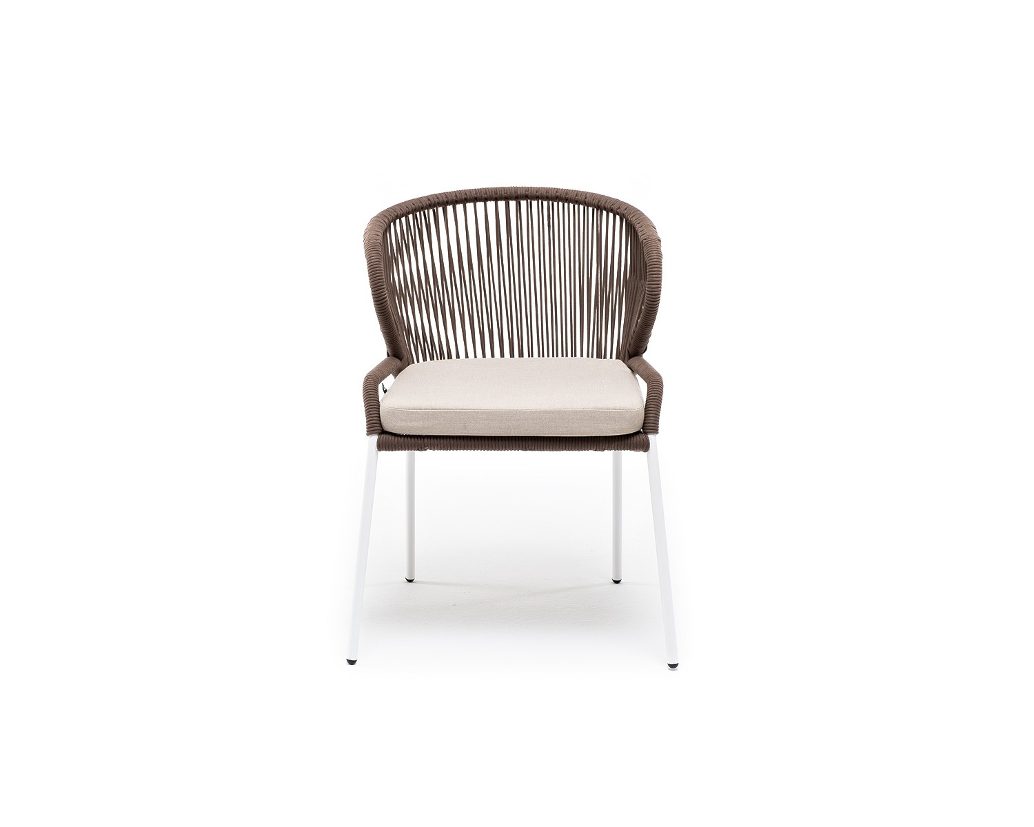 Стул "Милан" для обустройства обеденной или лаунж-зоны. Изготовлен из алюминиевого каркаса белого цвета, оплетенного вручную эластичными синтетическими лентами из высокопрочных полиэфирных волокон (роуп круглый). Цвет оплетки - коричневый. В комплект входит подушка со съемным чехлом из 100%-го полиэстера с влагоотталкивающей пропиткой бежевого цвета. Размеры плетеного стула - 600х660х810 мм.